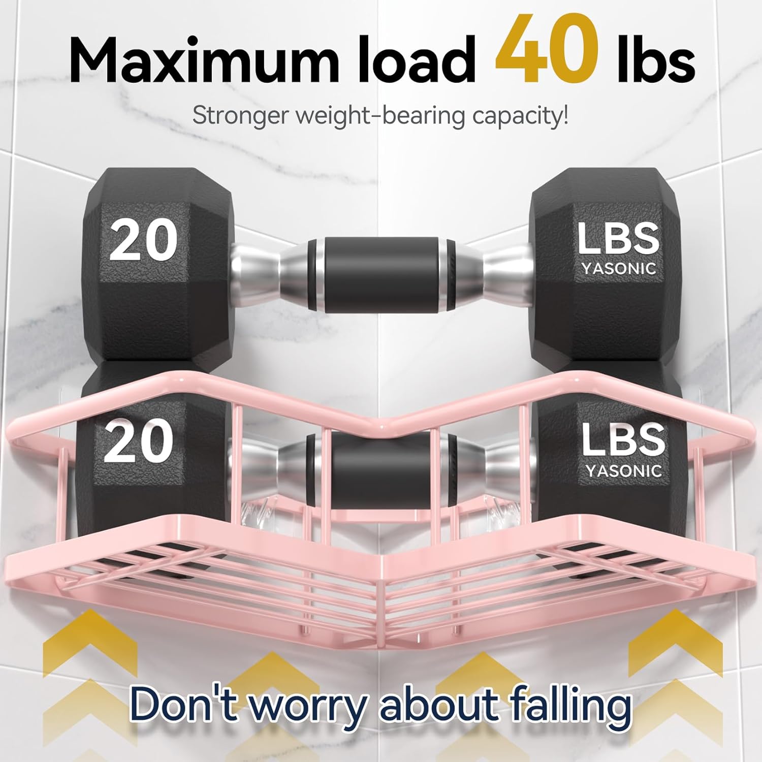 YASONIC Shower Caddy Corner, 3-Pack Adhesive Rustproof Stainless Steel Shower Shelves with Soap Holder, No Drilling Shower Organizer Corner for Dorm, Renters Bathroom, Pink