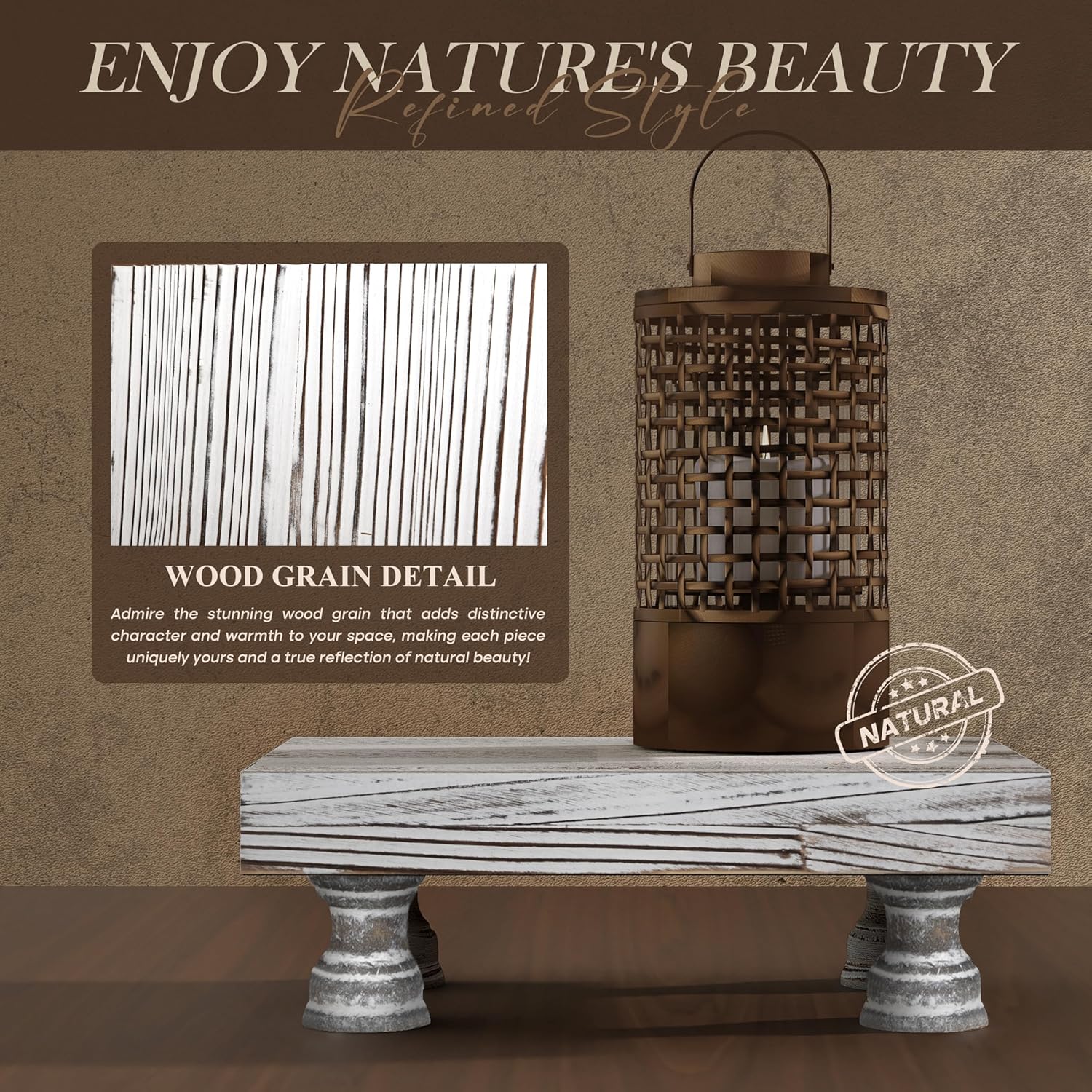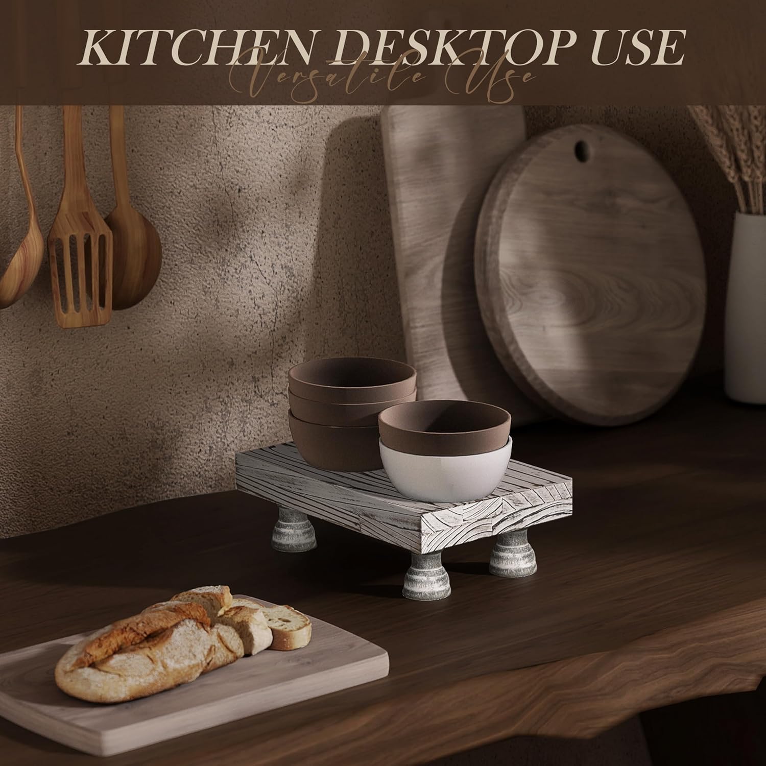 - [ELEVATE HOME DECOR] Add a touch of charm to your living space with our wooden riser (8.5*6). This beautifully crafted wood pedestal stand enhances the layered look of your room decor, bringing a delightful farmhouse style that perfectly complements any room. Whether you place them in the entryway, or living room, they serve as the perfect accent.