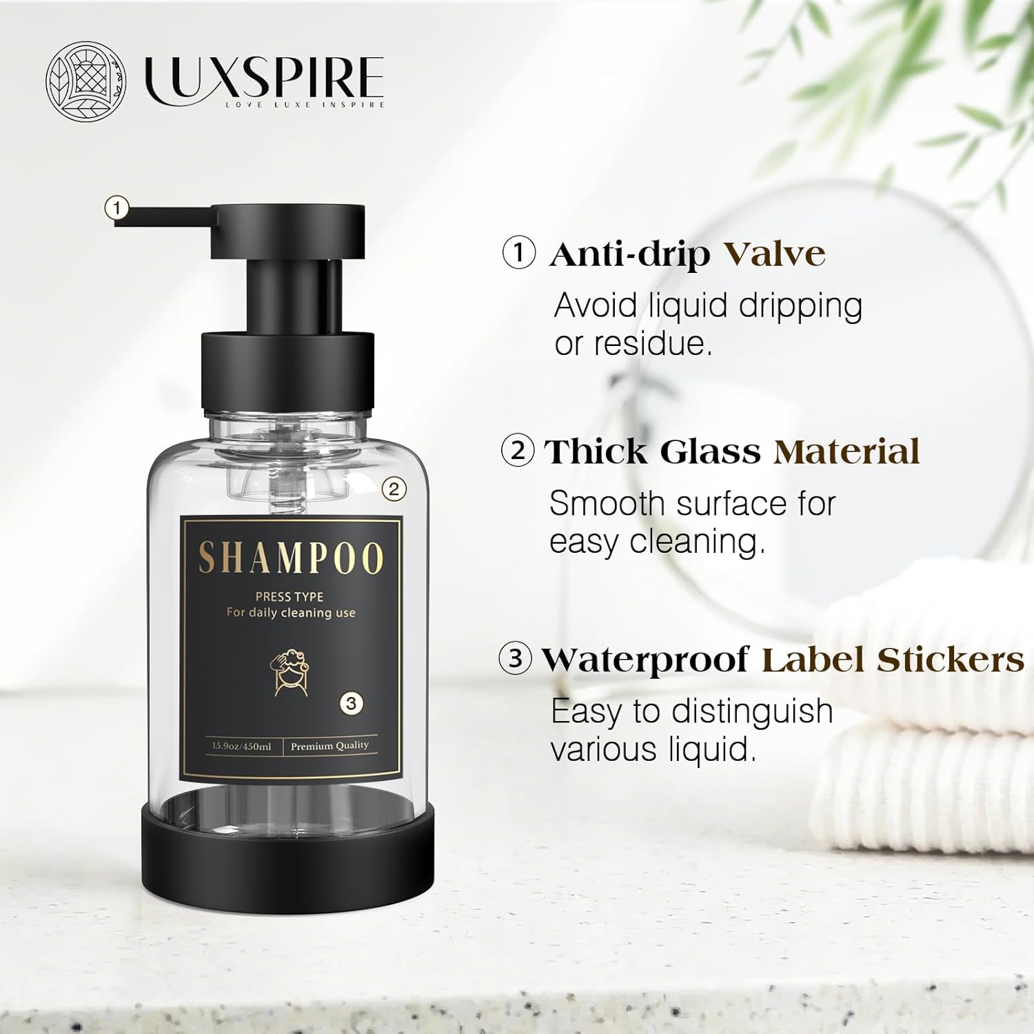 - Easy Foaming: Luxspire soap dispenser is easy to refill soap with a wide mouth. Simply mix soap and water into it and press the pump, you can enjoy a dense and creamy foam. It not only saves soap, but eliminates the trouble of manual foaming, more efficient and convenient! The large capacity of 15 Oz can solve the trouble of frequent soap refilling. Tip: We recommend mixing 3-5 parts water to 1 part soap.