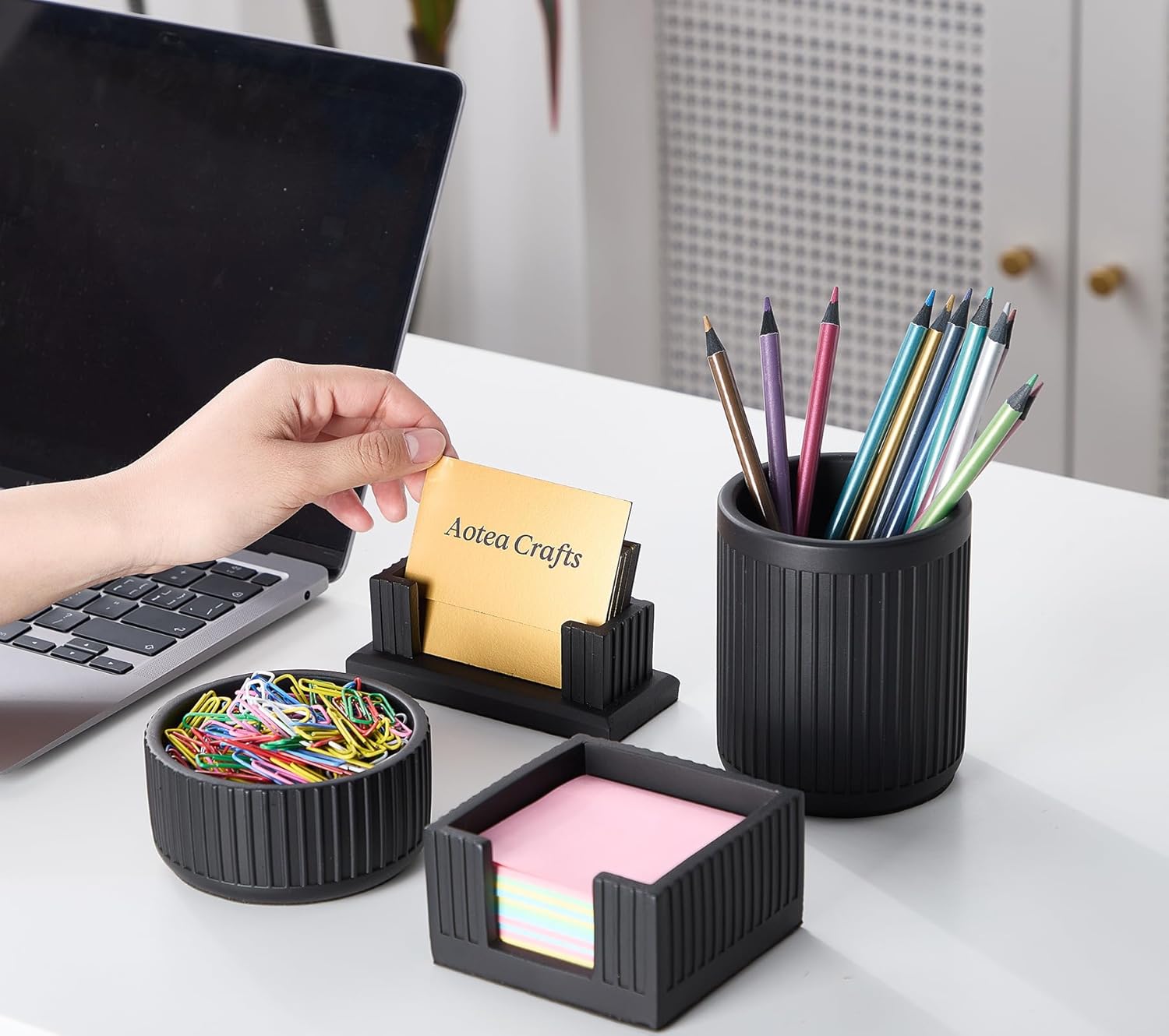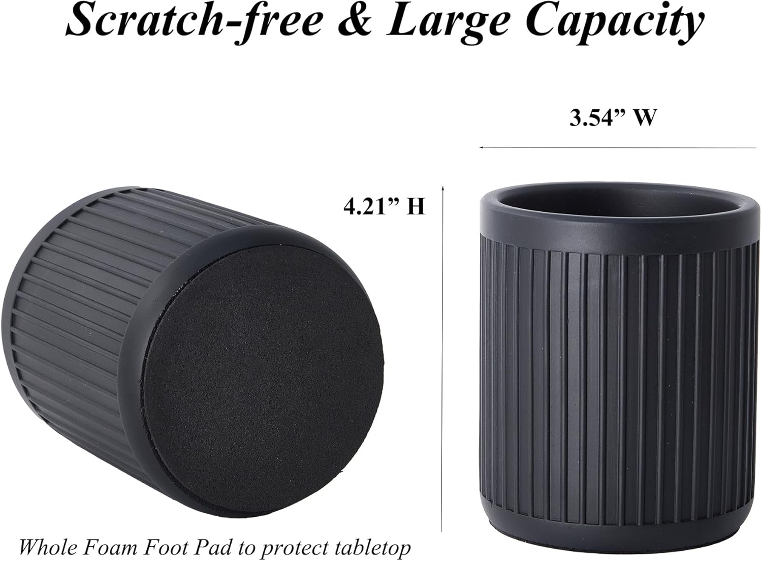 Aesthetic Charcoal Black Pen Holder for Desk - Concrete Modern Sturdy Black Pencil Holder for Desk- Cement Fluted Pen Cup Organizer - Minimalist & Modern Industrial Aesthetics to Office Decor