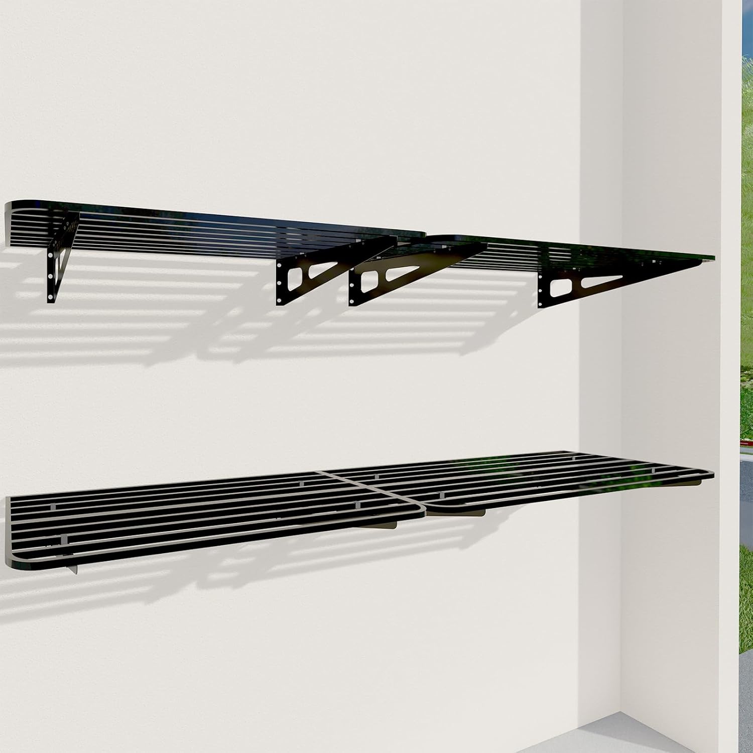 - 【Garage Shelving Wall Mounted】: Includes independent wall brackets and heavy-duty mounting hardware to fit any wall stud spacing. Quickly and securely install your garage wall shelving on any setup.