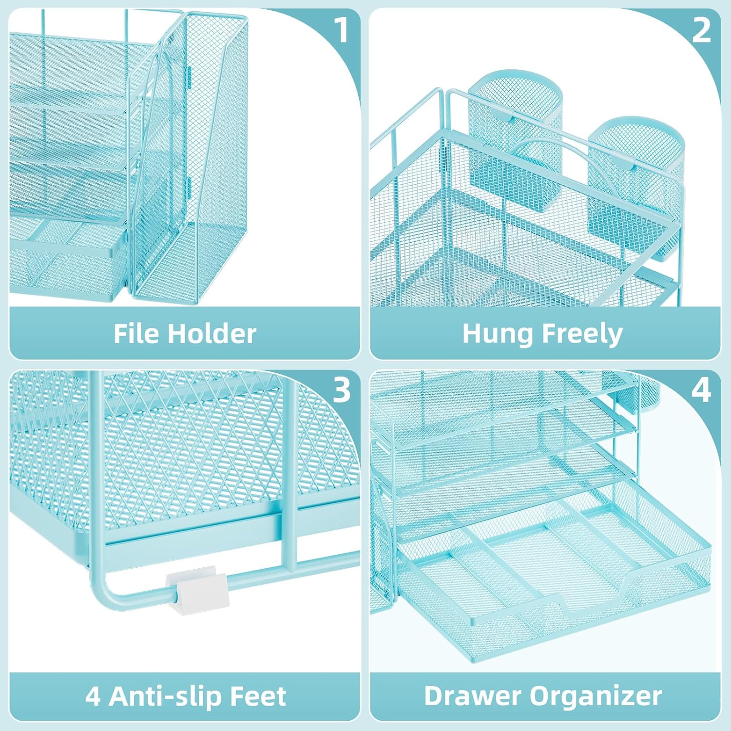 - 【High-quality Materials】The mesh desktop file organizer is made of lightweight and durable metal mesh, reinforced with a sturdy steel frame, and the outer layer is epoxy-coated, rust-proof and very durable, with long-lasting strength and reliable performance.