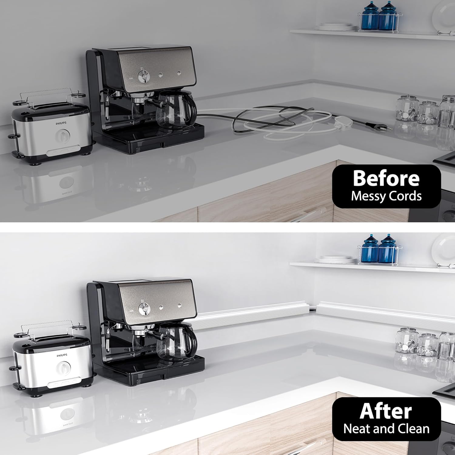 - Quick Installation, Damage-Free Removal - Each wire organizers for cords comes with pre-applied adhesive tape, allowing you to skip the complex installation process. Simply peel off the protective film and adhere the desk cord organizer to any smooth surface for a robust installation. With a little heat from a hairdryer, you can easily remove the cable raceway without tools, leaving no residue and preserving the condition of your furniture and walls