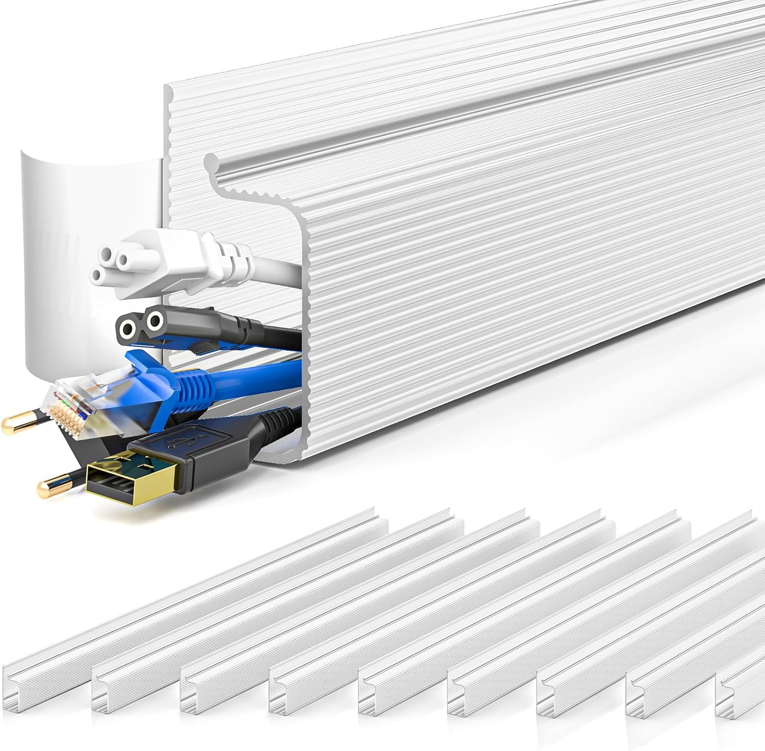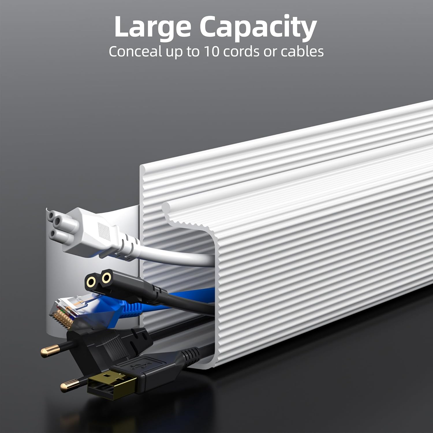 - User-Friendly Design Advantage - Unlike traditional cord organizer for desk, our J channel cord management feature a unique outward-facing opening design. This means placing or removing cables is effortless, significantly enhancing user comfort. The design of our desk cable management also allows for flexible adjustment of cable layouts as per your needs.