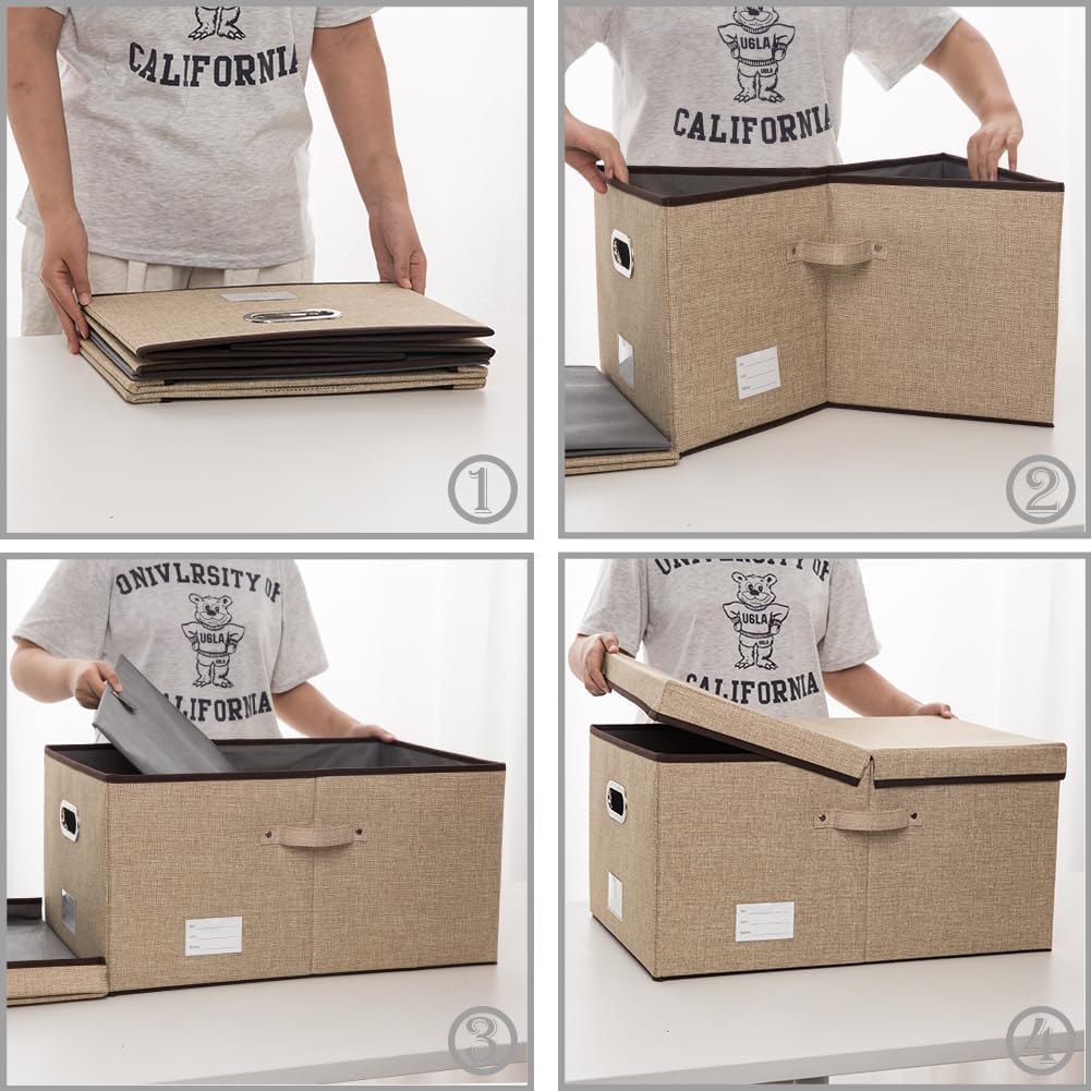 PRANDOM Storage Bins with Lids [3-Pack] Jute Fabric Foldable Storage Boxes Organizer Containers Baskets Cube with Cover for Home Bedroom Closet Office Nursery khaki(23.4X15.9X11.5