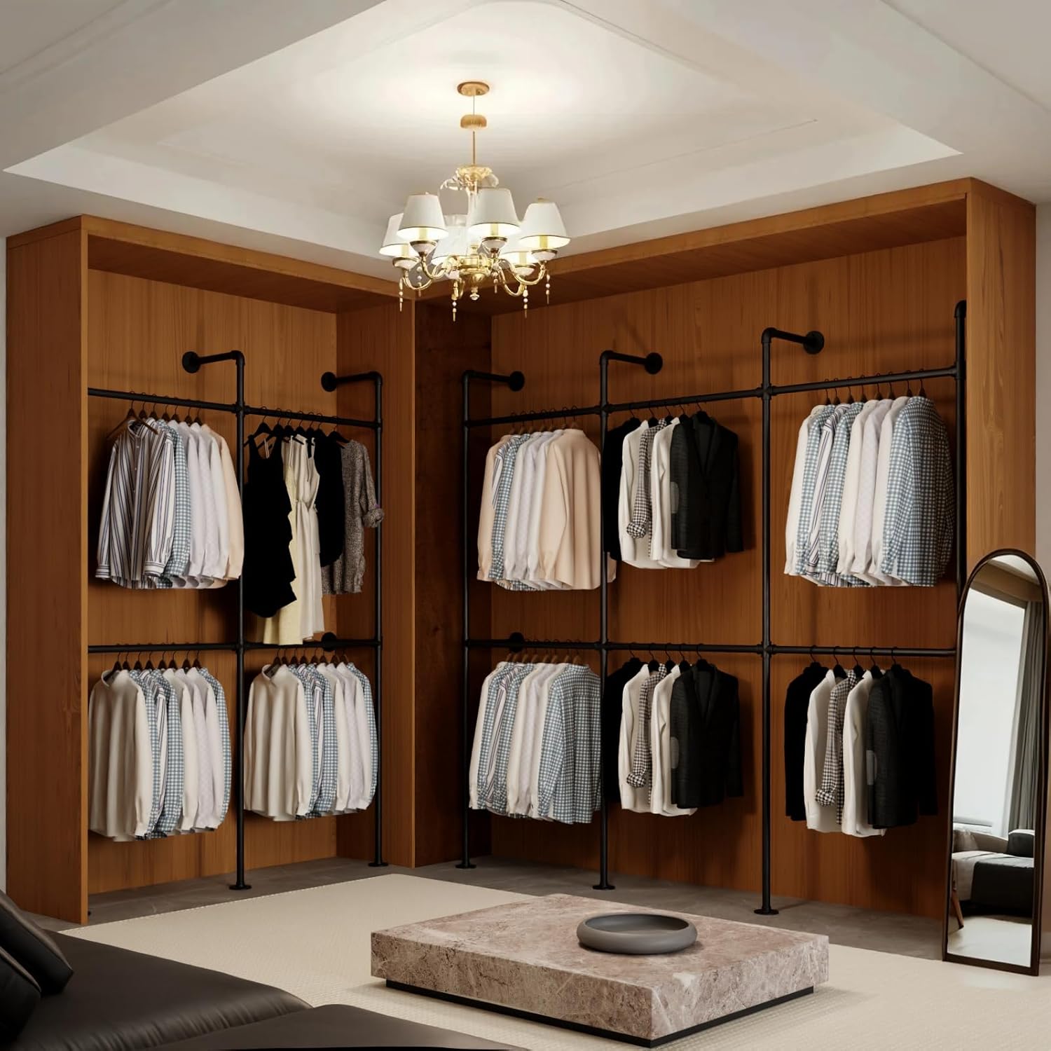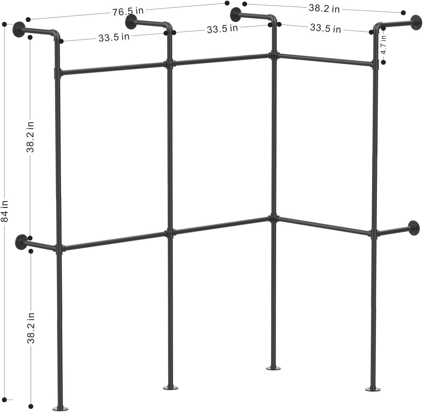 Industrial Pipe Black Clothing Racks Wall Mounted, Rustic Industrial Pipe Clothes Rack Design - Stylish & Heavy Duty Corner Garment Racks, Perfect for Home or Retail Display