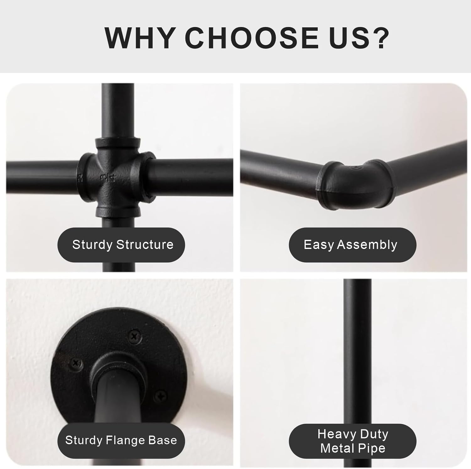 - Sturdy & Stable: Crafted from high-quality iron pipes, this wall-mounted clothing rack promises exceptional durability. The sturdy design prevents sagging or swaying, providing a reliable solution for all your hanging needs.