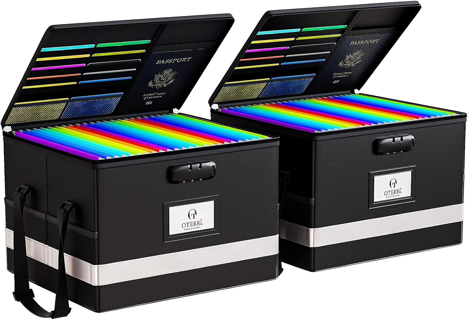 Oterri Large 2 Pack Fireproof Document Box With Lock, Portable File Safe Box Fireproof Waterproof For Hanging Letter&Legal Folders, Office Storage for Important Documents (Black)