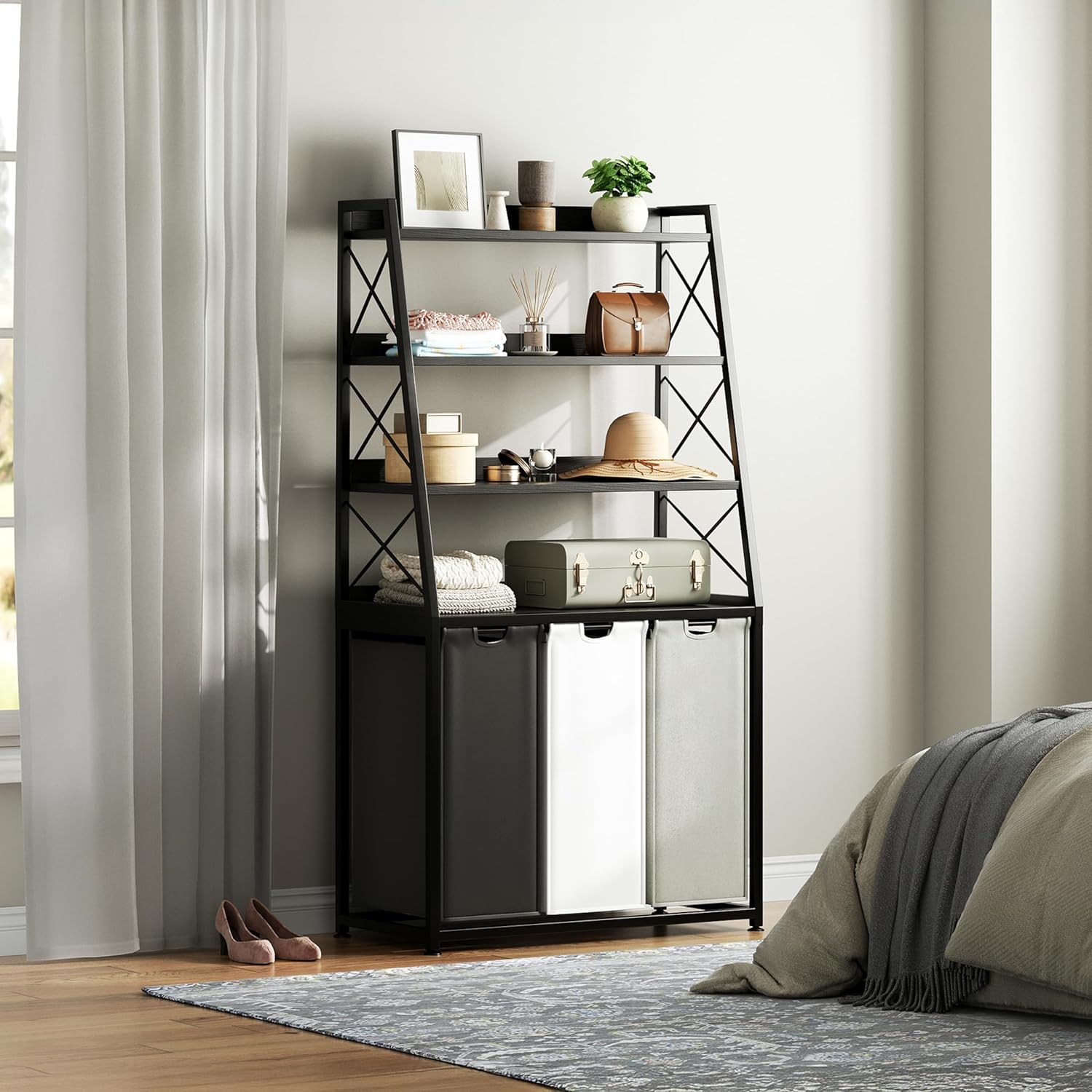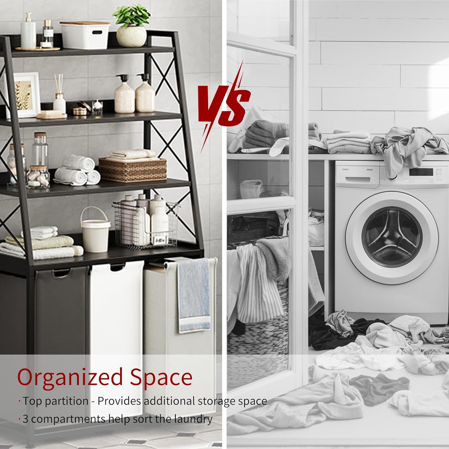 - Versatile and stylish design - The laundry Hamper with shelves features a detachable and pull-out design, and the three laundry bags can be removed from the shelves. It combines functionality with style, complementing the decor of any room, whether it's placed in the laundry room, bathroom, or bedroom. The vertical sorter design saves valuable floor space, allowing you to optimize your room layout.