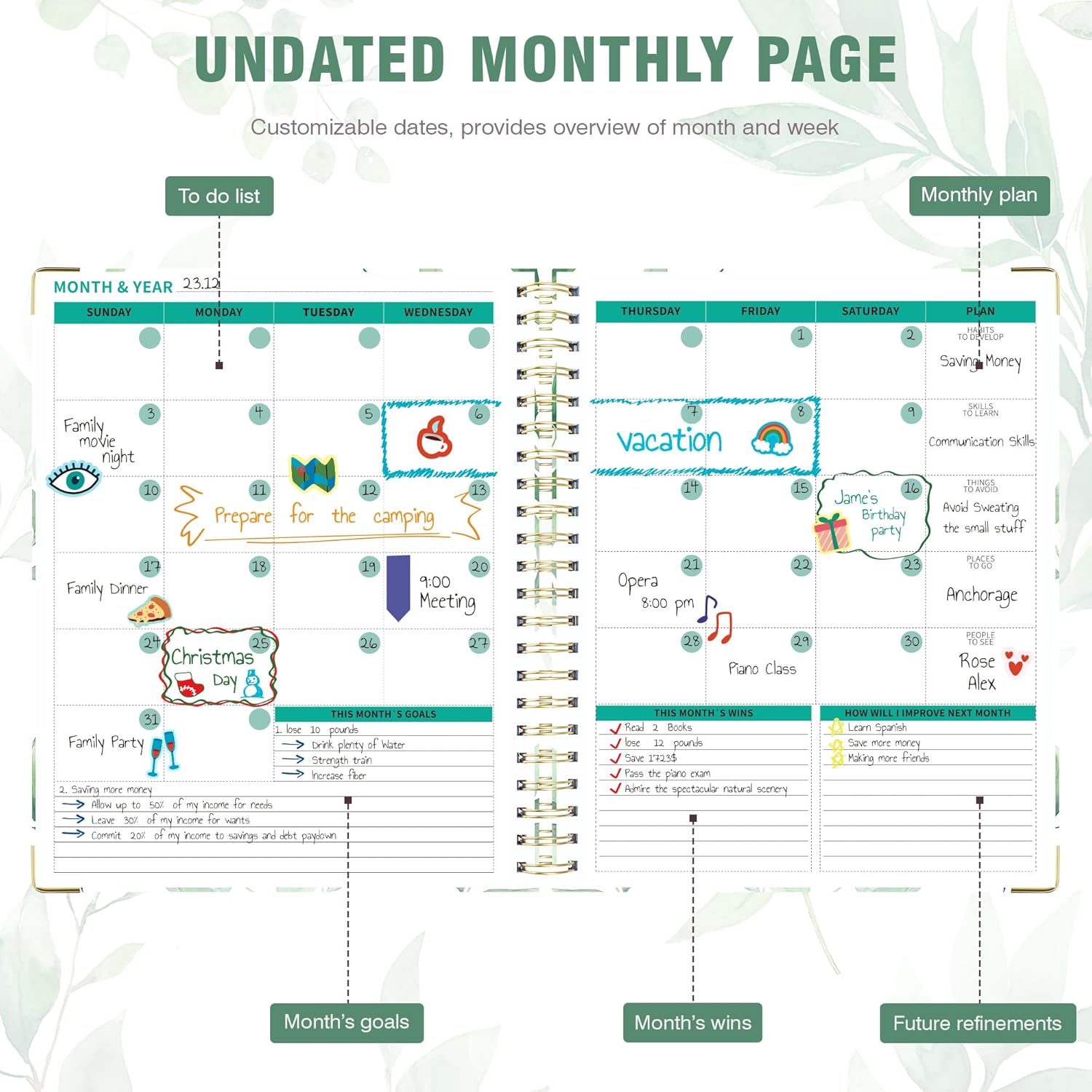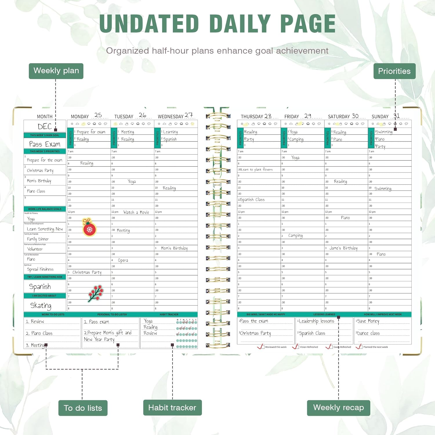Ospelelf Undated Spiral Bound Planner Daily, Weekly and Monthly Planner 2025-2026, Work Planners 12 Month 8.5 x 11