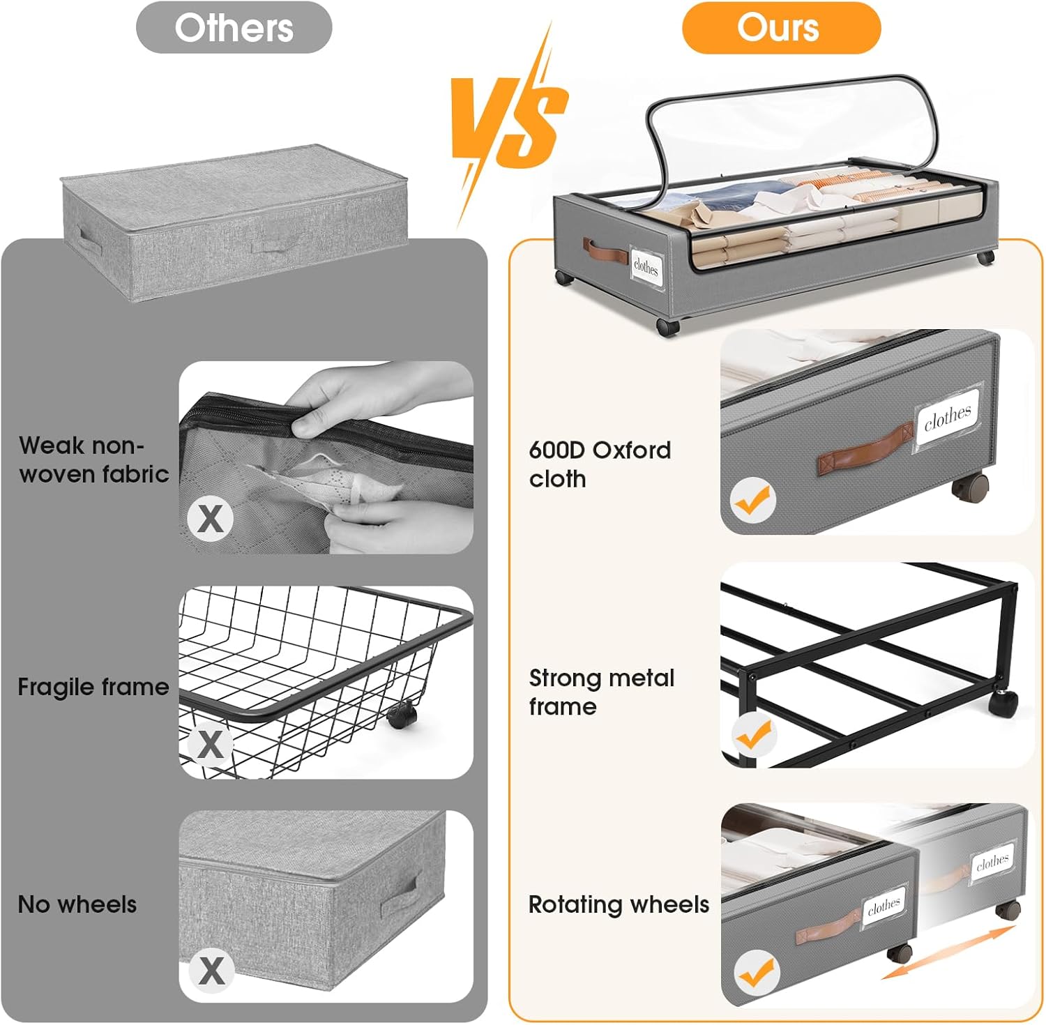 - High-Quality&Large Capacity: our under bed drawers is made of 600D Oxford cloth and strong metal frame, which can hold up to 66lbs; the wheeled bed storage box can accommodate many daily necessities, such as clothes, toys, books, shoes and so on