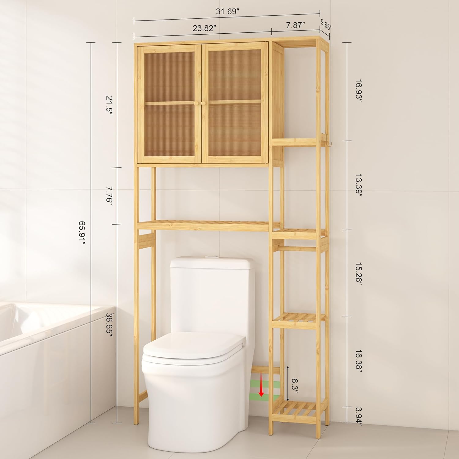- Bamboo Over Toilet Storage Maximizer:Maximizes vertical bathroom storage space above your toilet. Perfect space-saving solution for small bathrooms and apartments.