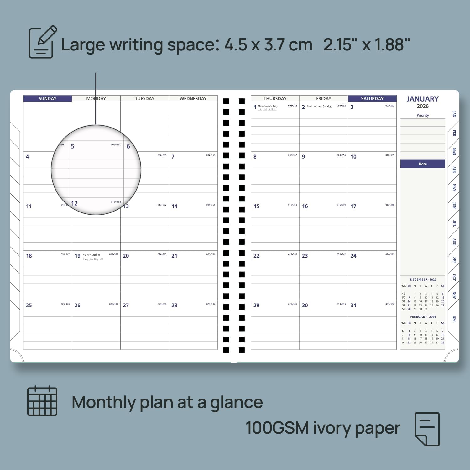 - JAN 2026 - DEC 2026 WEEKLY PLANNER: This planner covers 12 months of 2026 so that you can track the whole year's schedule easily. The size is medium - 7'' X 8.5'', which permits enough writting space and is comfortable to carry and use, making your busy daily routines stay organized.