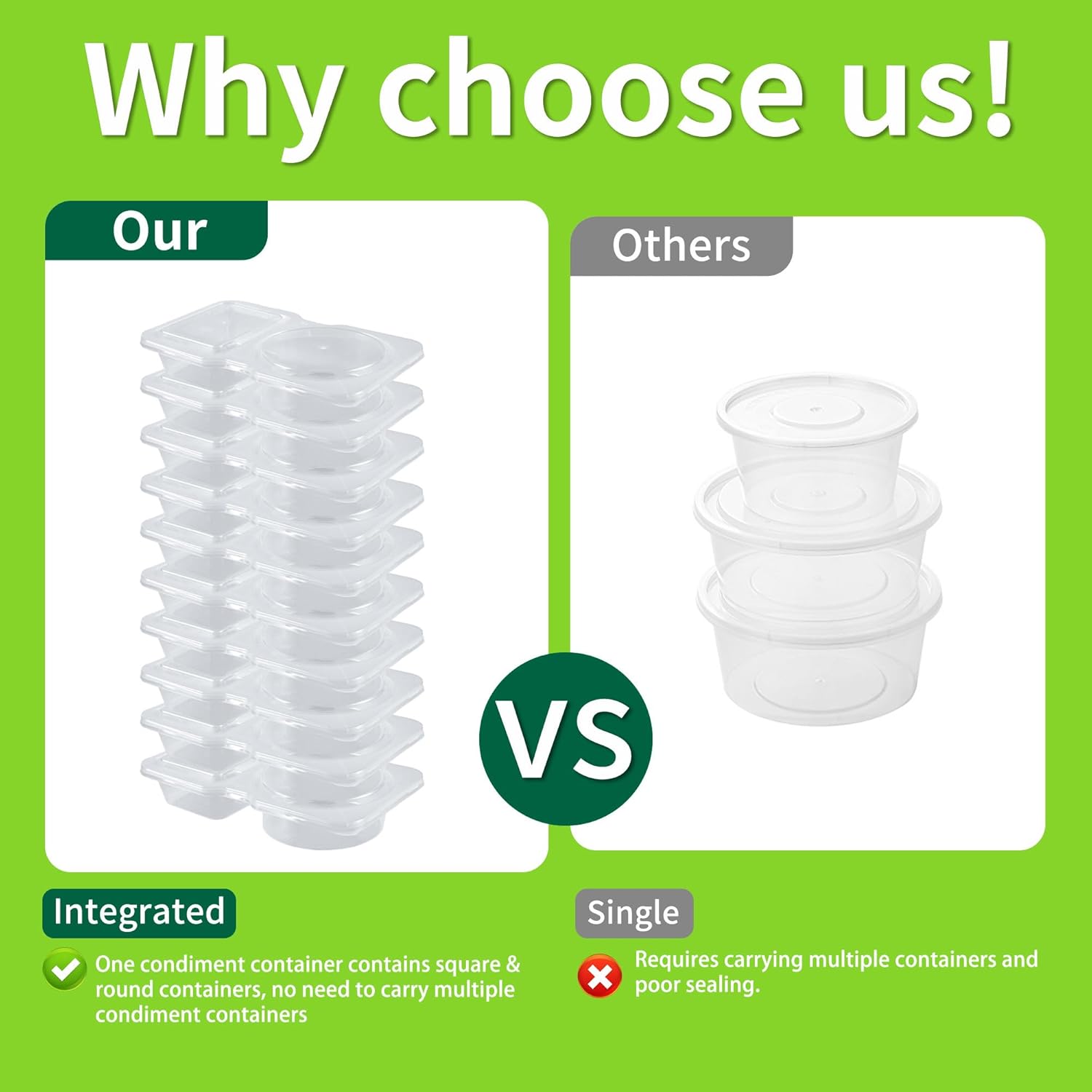 40 Pack 4.5 Oz Double Compartment Condiment Container With Lids, Disposable Sauce Container, Clear Plastic Snack Containers