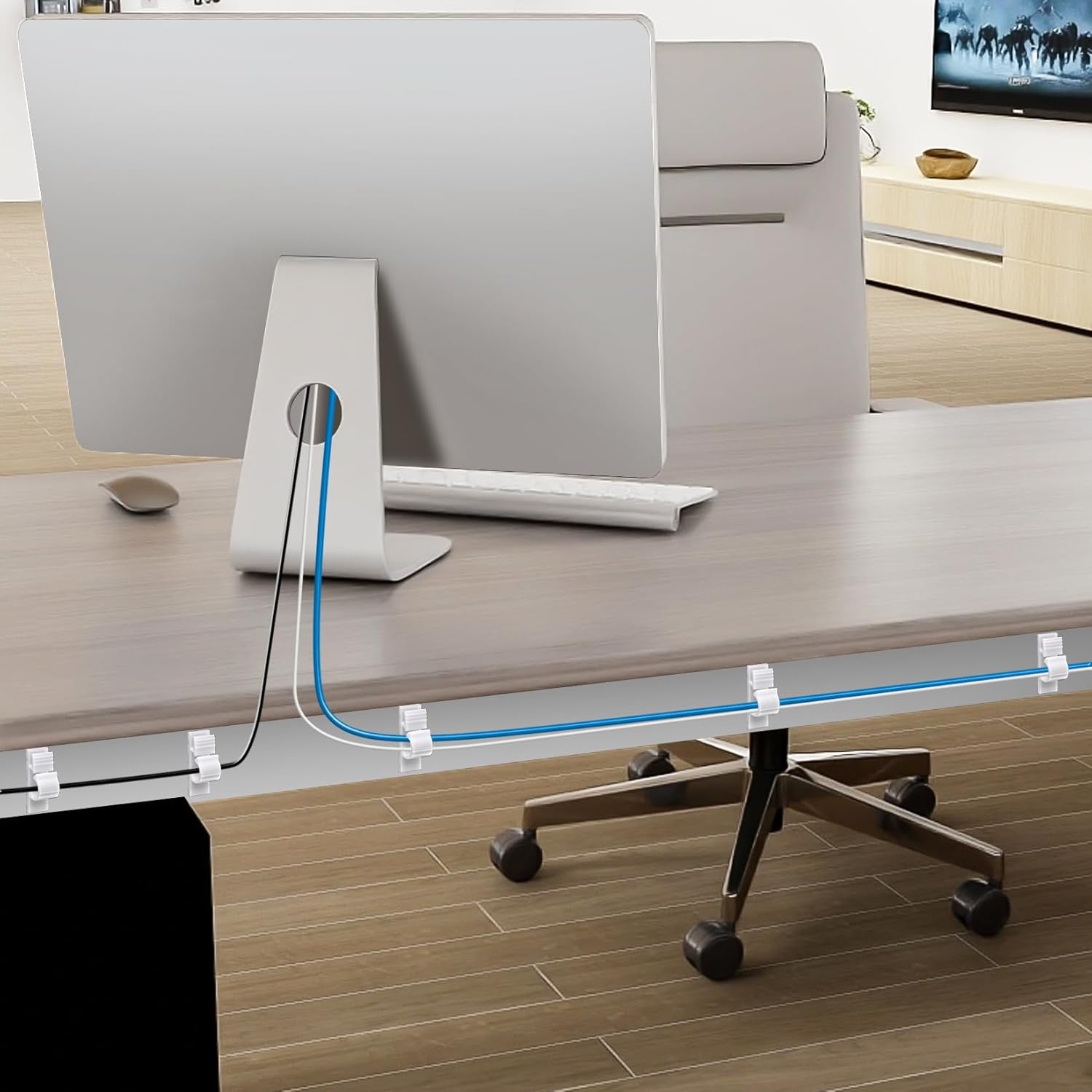 XHF 100pcs Adhesive Cable Wire Clips White, Outdoor Cable Management Wire Organizer Cord Holder for Under Desk, Car, Wall, TV PC Ethernet Cable
