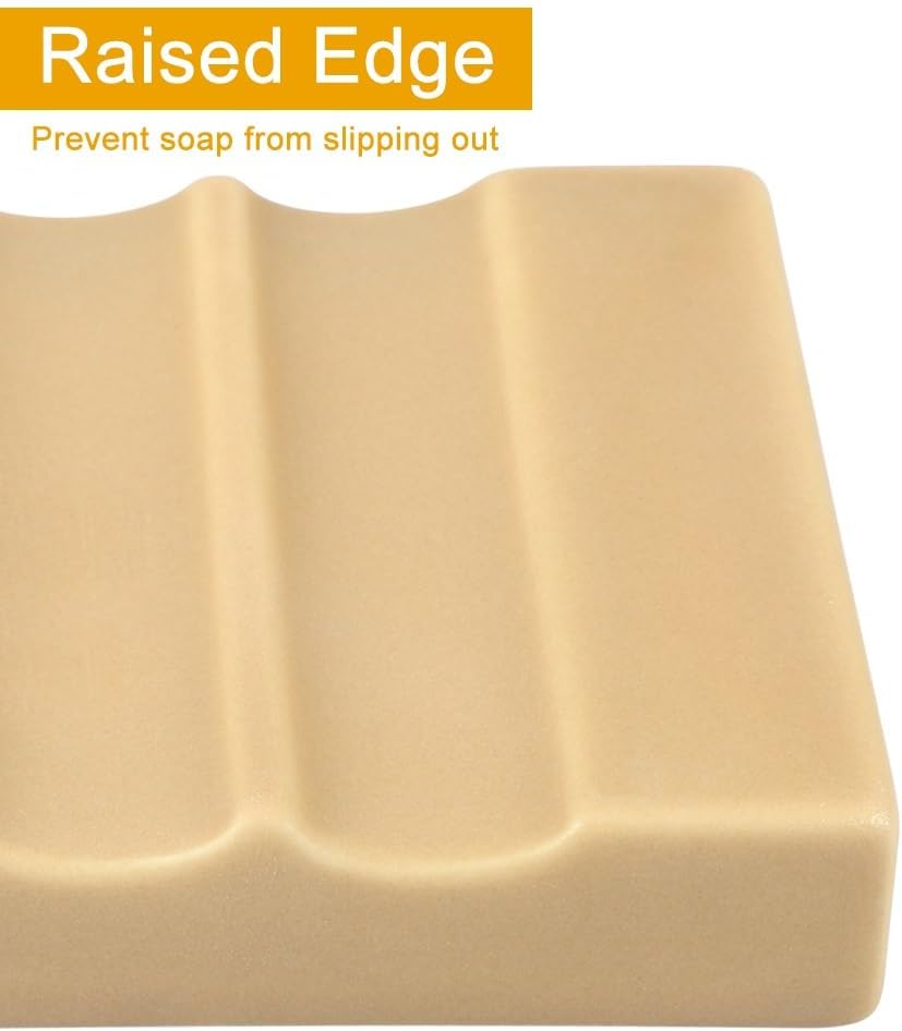 Soap Dish for Bathroom Sink and Shower Ceramic Soap Tray, Small Bar Soap Holder with Drainage Non-Slip Luxury Bathroom Decor Accessories (Khaki)