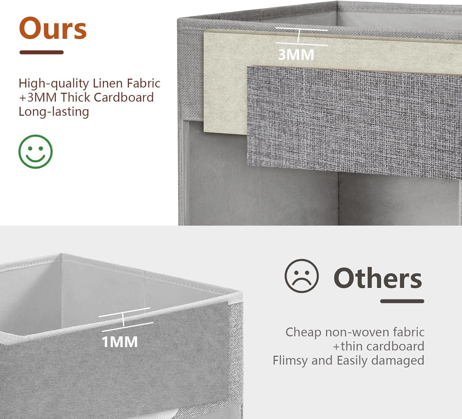 - Premium Linen & Sturdy Cardboard Construction: The storage bins are built to last with a durable blend of high-quality linen fabric and thick, reinforced cardboard. The precision-cut design ensures a polished look, while the robust materials resist sagging, tearing, or warping—ideal for storing heavy items. These closet organizers elevate any space while standing up to daily use.