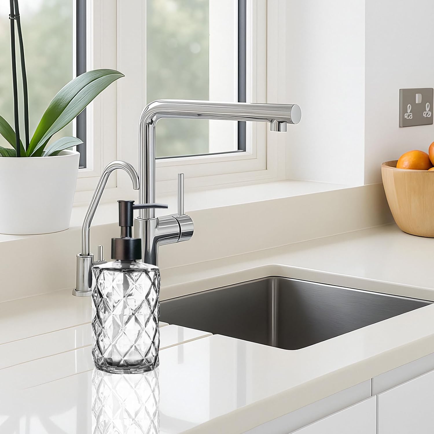 - Unique Design: Equally elegant and functional, clear glass soap dispenser featuring small diamond pattern, lovely way to adds a unique style, which make it look beautiful and stylish.