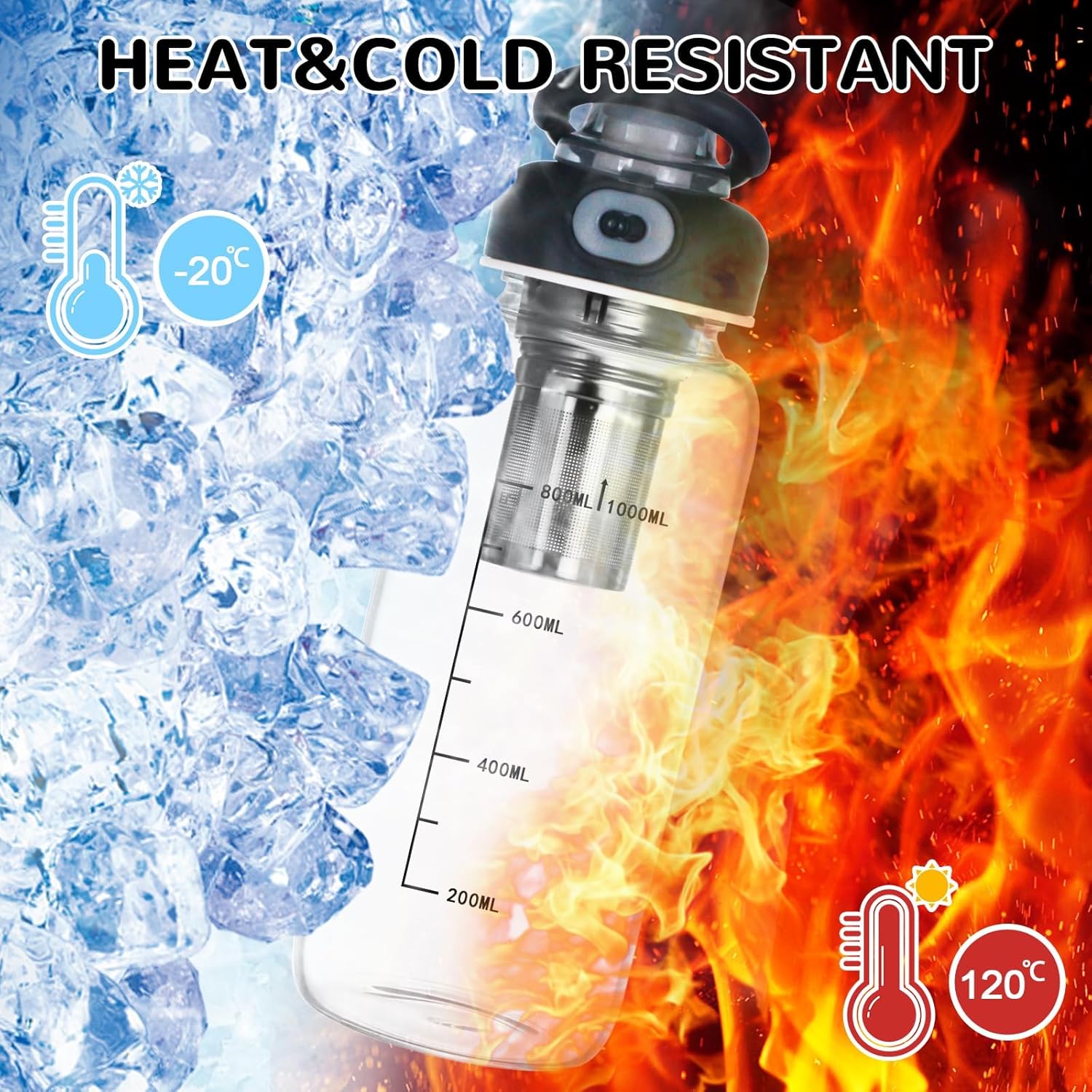 - High-Quality Material:Made of borosilicate glass, this water bottle is lead-free, and built to last. Designed to resist cracking and breaking, it ensures long-lasting use for both hot and cold beverages