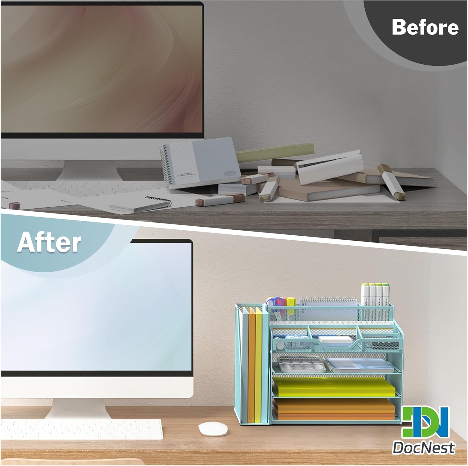 - Easy Assembly and Maintenance: Simplify your office organization with the DocNest tray organizer, which is easy to assemble and maintain. Its modular design allows for quick setup, and the mesh compartments are easy to clean, ensuring that your workspace remains tidy and organized with minimal effort. This desktop organizer is a breeze to maintain, saving you time and effort in keeping your office space pristine