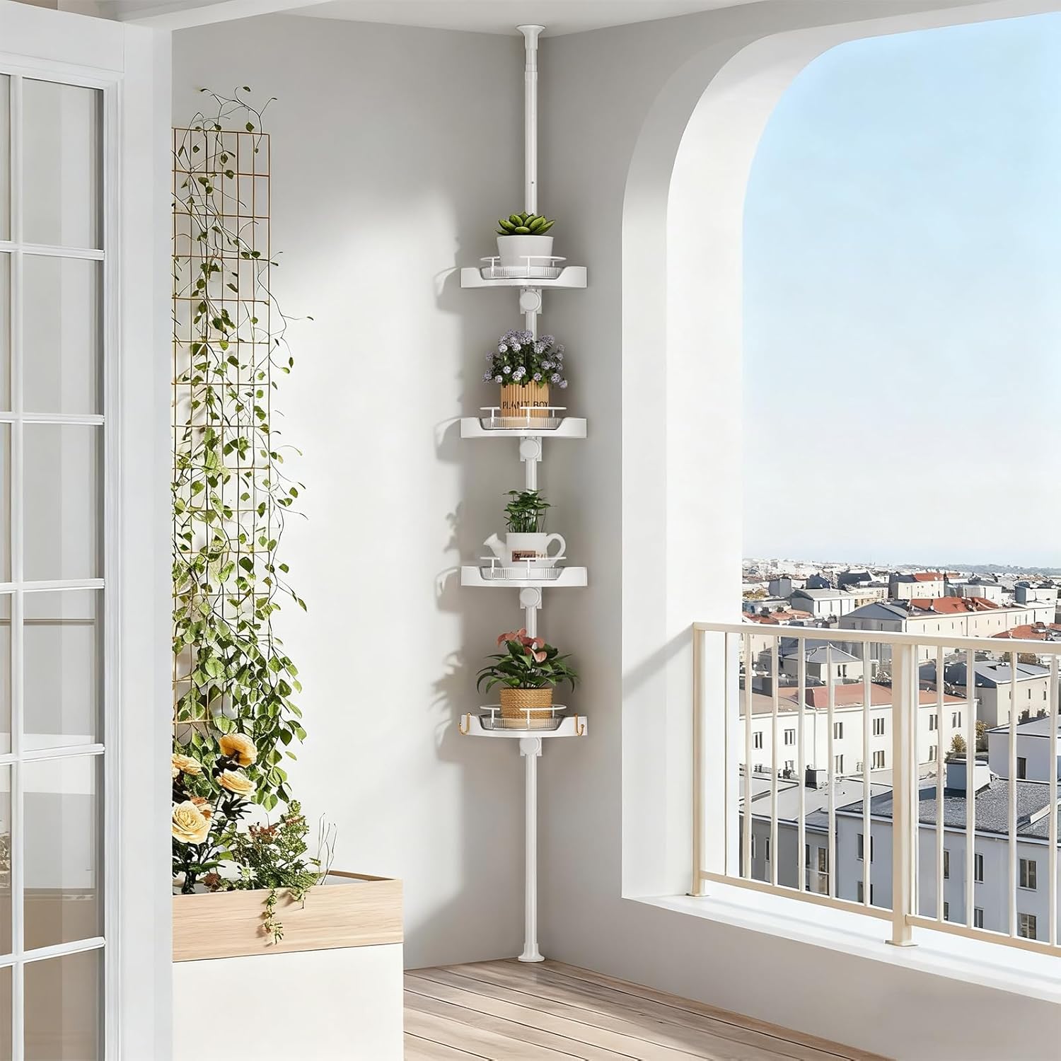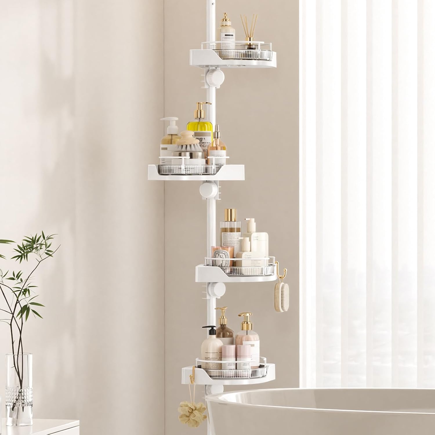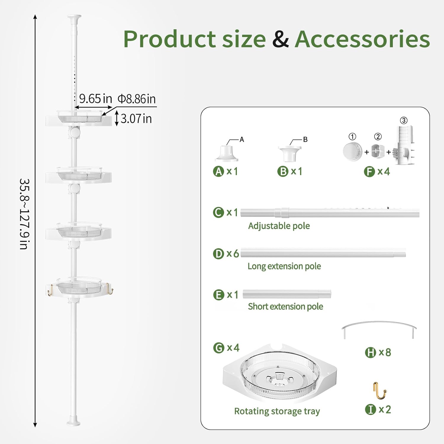 - 【Fits All Shower Heights】The adjustable shower shelves fit most showers from 35 to 128 inches. Whether it is a high-rise apartment or a low-rise residence, you can adjust it according to the actual height of the bathroom; at the same time, the freestanding shower organizer can be placed not only in the bathroom, but also in the kitchen, RV, laundry room, etc., to making your bathroom or shower looks nice and organized. (Note: This shower caddy set is not designed for sloped ceilings)
