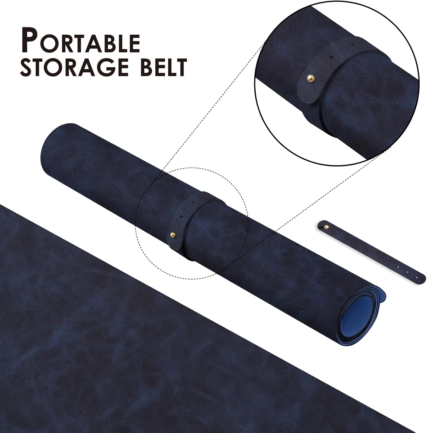 Distressed Leather Desk Mat - Non-Slip PU Desk Pad for Office and Home - Desk Organization and Accessories - Ideal for Large Mouse Pad and Desk Mats on Top of Desks(Navy Blue,27.6"x 13.8")