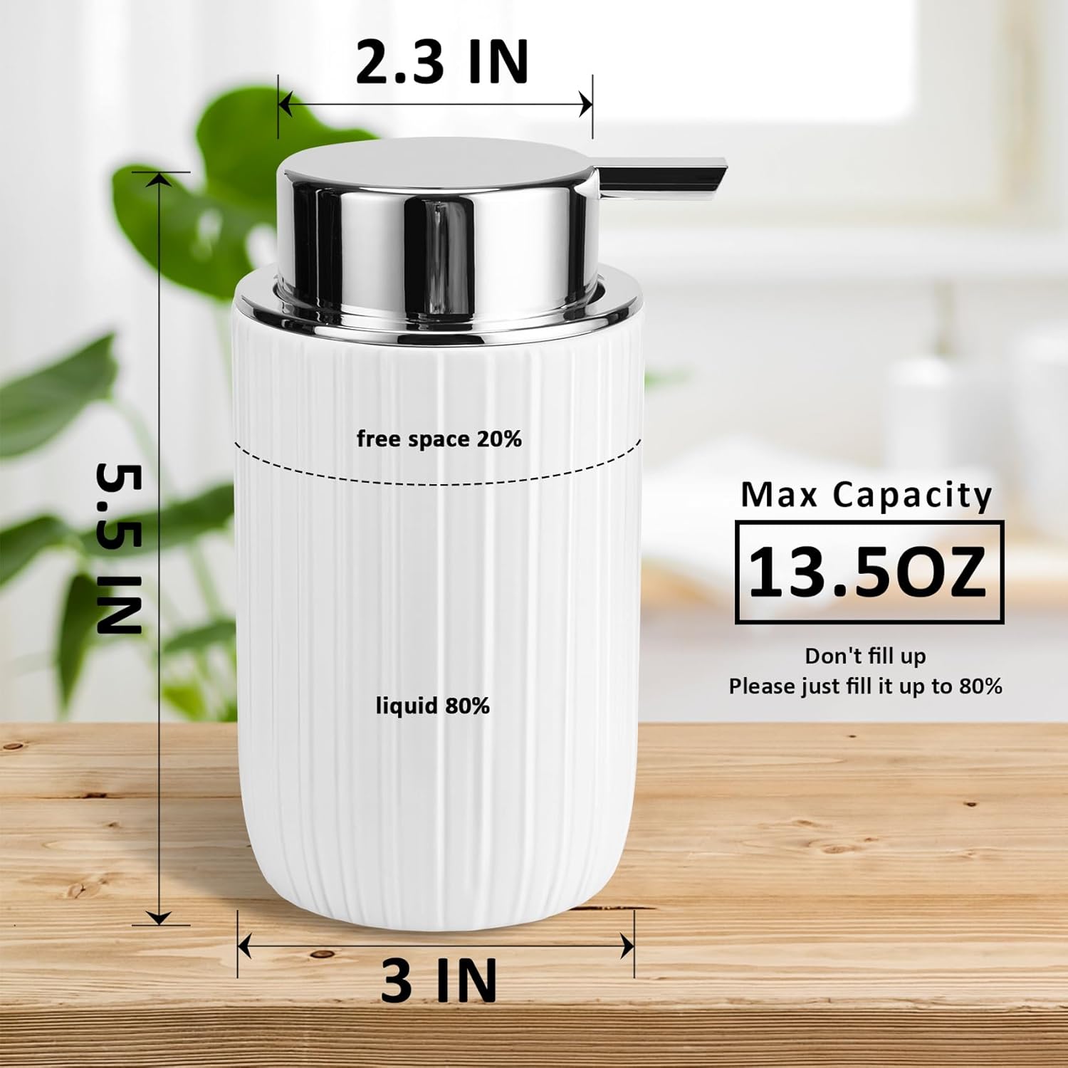 Soap Liquid Dispenser Ceramic with Easy-to-Press Pump Hand Liquid Dispenser (Can't Foam) for Shampoo Bathroom Countertop 13.5 oz