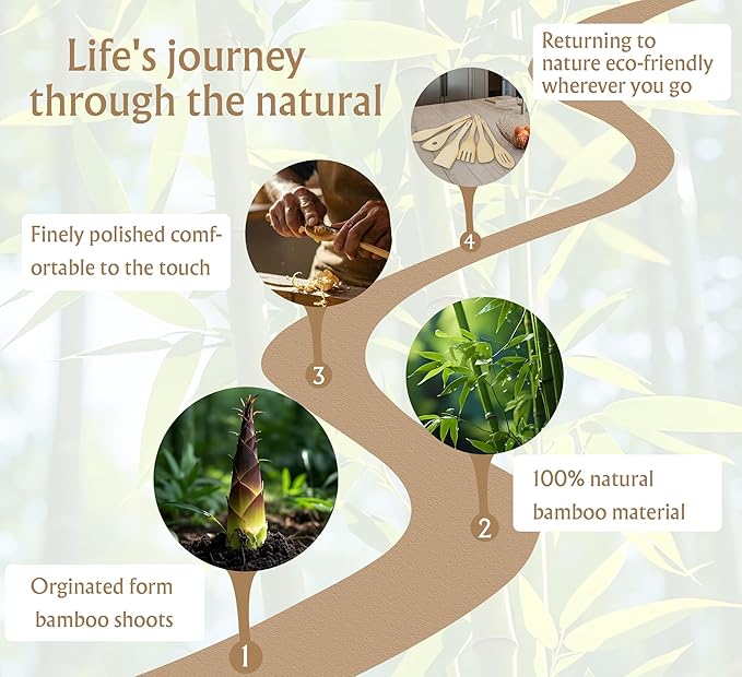 - 【Zero-Waste Hero: Sustainability You Can Taste】 Every purchase regenerates 3m² of bamboo forests**. Replace plastic spatulas (saves 6/year) and ditch disposable stirrers (eliminates 50+ single-use items annually). From searing steaks to plating macarons, this set fuels both chef-grade kitchens and eco-conscious cafes.