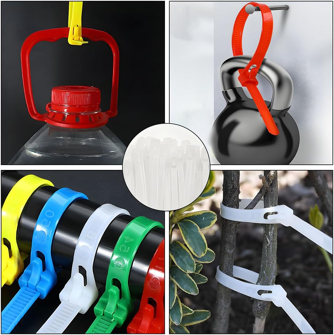 - 📌【Reusable Zip Ties with Quick-Release 】Adjust and reuse these heavy-duty ties endlessly with our easy-press lever - no cutting needed! Perfect for organizing cables, securing decorations, and DIY projects. The strong locking mechanism holds tight while allowing easy readjustment. Save money and reduce waste with these eco-friendly ties loved by professionals and homeowners.