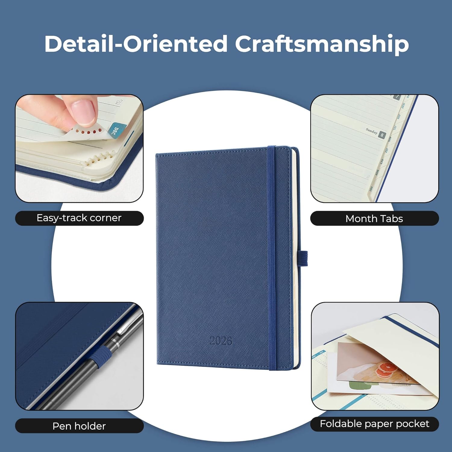 IN-LUXPRO Weekly Monthly 2026 Planner (Jan.26-Dec.26),8.5"x6.5",12 Months Agenda Plan with Month Tabs & Pocket,Expenses/Note Pages, Appointment Book Calendar with Hardcover Vegan Leather Cover,Blue