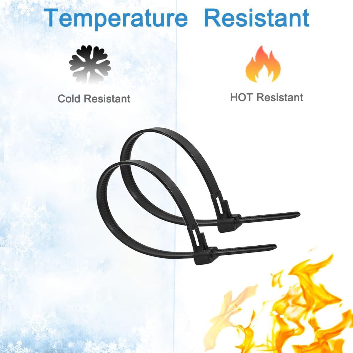 - 📌【Heavy-Duty Nylon Cable Ties】 - Flame-retardant industrial-grade ties with 55 lb strength. UV, weather & corrosion resistant for -10°C to 70°C (+14℉ to +158℉) conditions. Perfect for electrical, outdoor and industrial use. Combine ties for extra strength when needed. Durable construction withstands sunlight exposure while providing secure fastening for wires, equipment and more.
