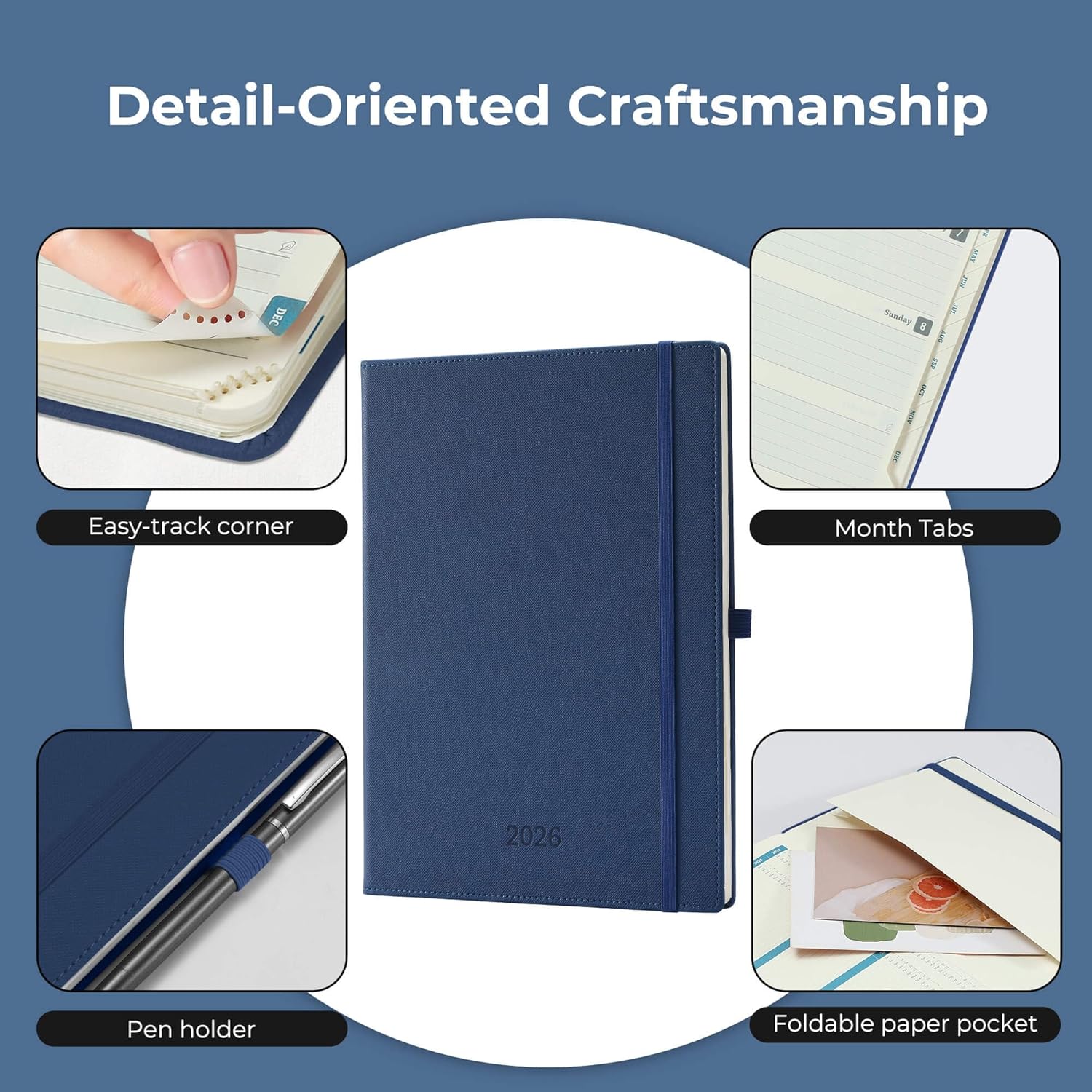 Weekly Monthly 2026 Planner (Jan.26-Dec.26),11.5"x8.5",12 Months Agenda Plan with Month Tabs & Pocket,Expenses/Note Pages, Appointment Book Calendar with Hardcover Vegan Leather Cover,Blue