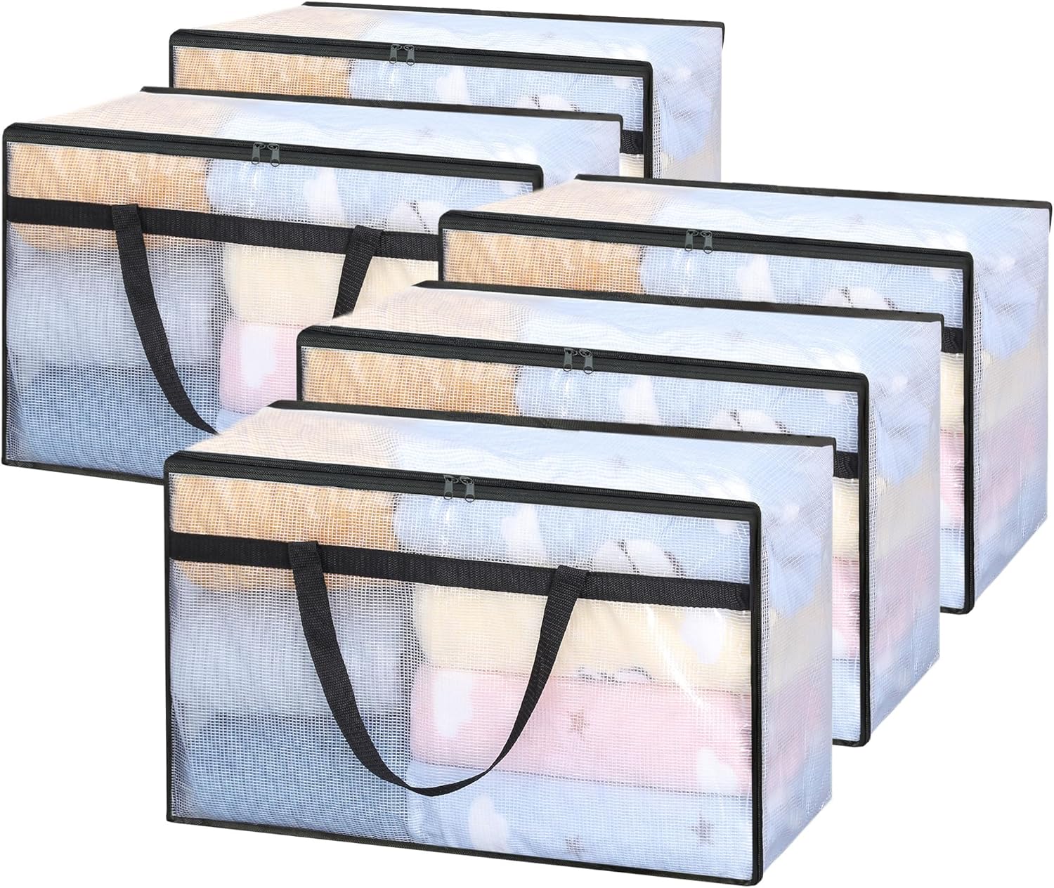 - 【60L Large Capacity Zippered Storage Bags】 Specially designed for clothing and bedding storage, each 60L plastic organizer bag easily holds 30 t-shirts. Features reinforced transparent mesh construction (21.65" x 13.78" x 12.2") that folds completely flat for compact storage under beds, in drawers, closets, vehicles or luggage