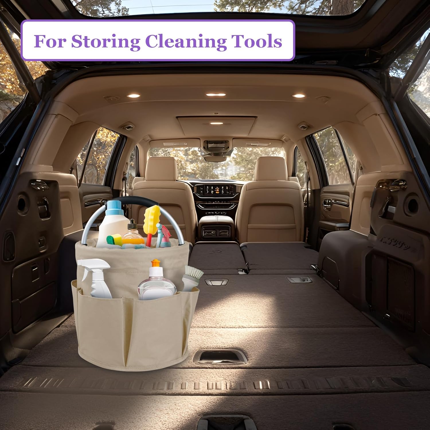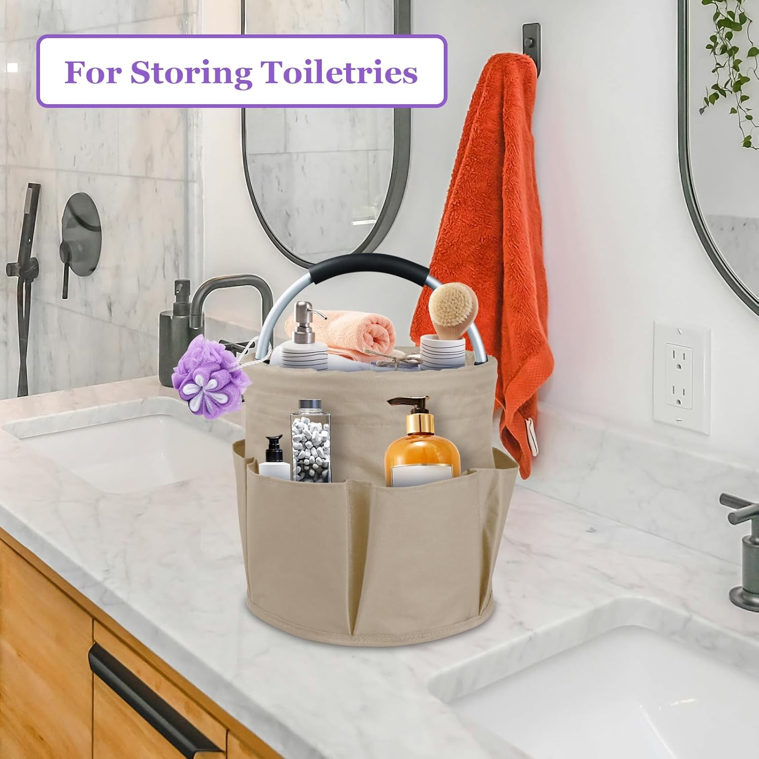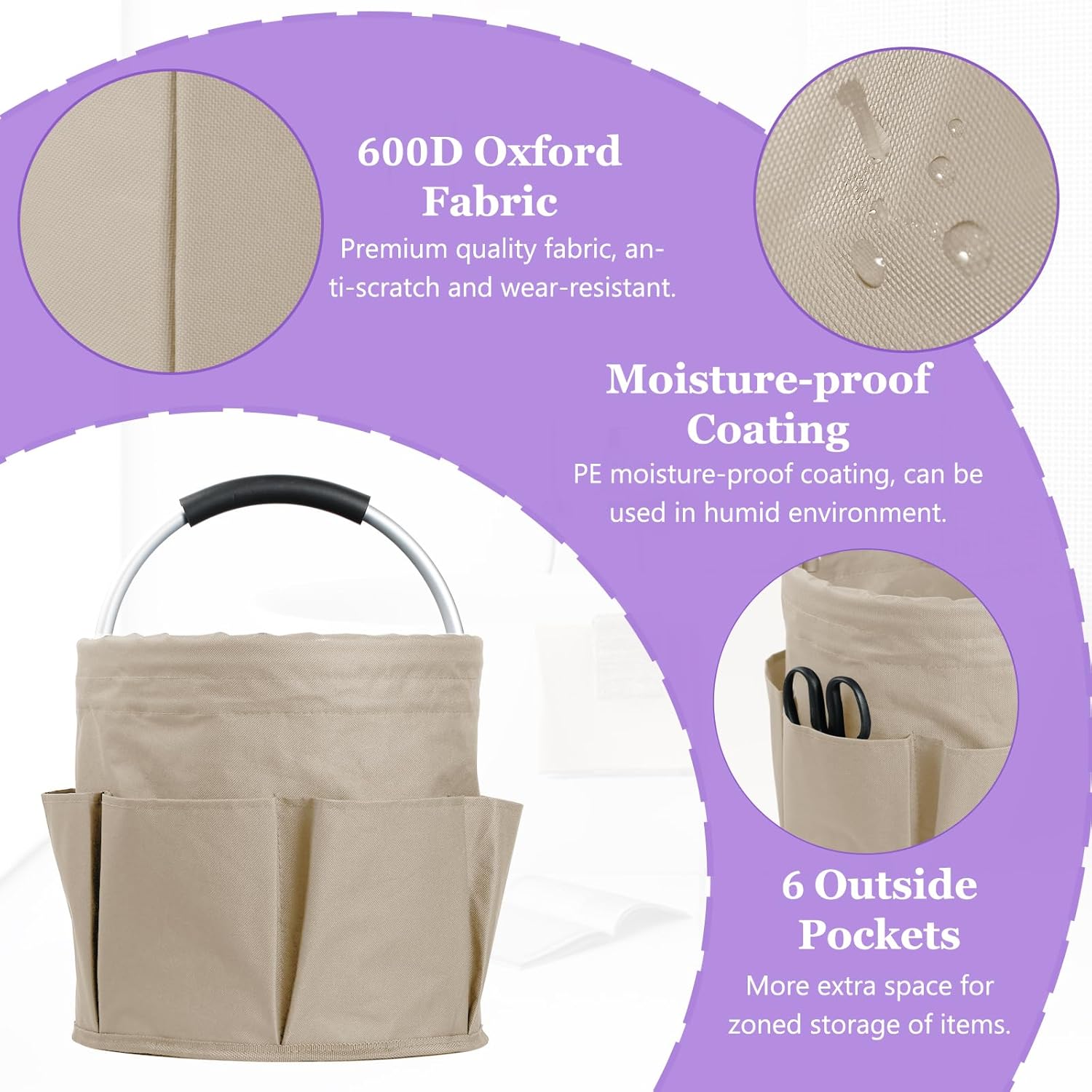 17L Cleaning Supply Caddy with Soft Handle, Portable Shower Caddy in 600D Oxford Fabric, Garden Tool Organizer Bag, Multifunctional Storage Basket for Bathroom, Garden, Khaki