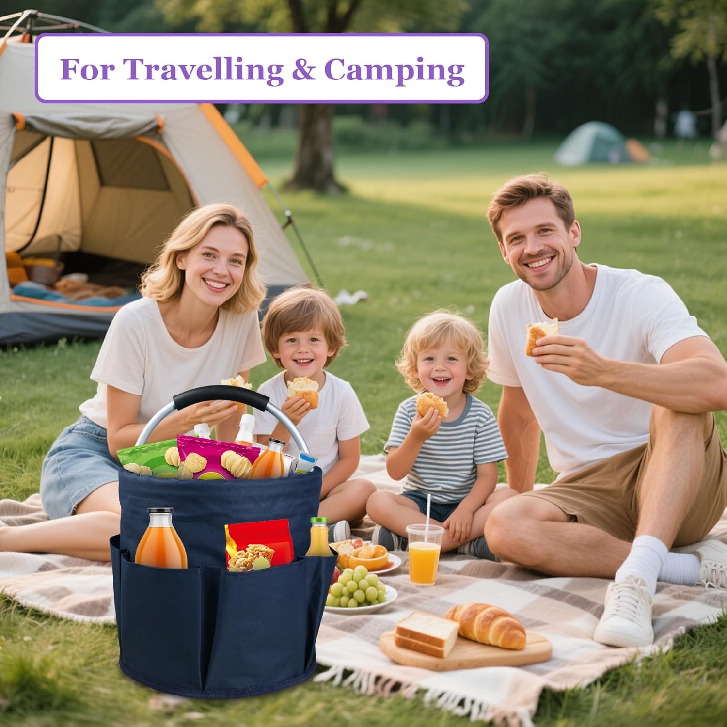 17L Cleaning Caddy with Handle, Portable Shower Caddy in 600D Oxford Fabric, Bucket Tool Organizer with 6 Side Pockets, Collapsible Storage Basket for Cleaning, Camping, Navy Blue
