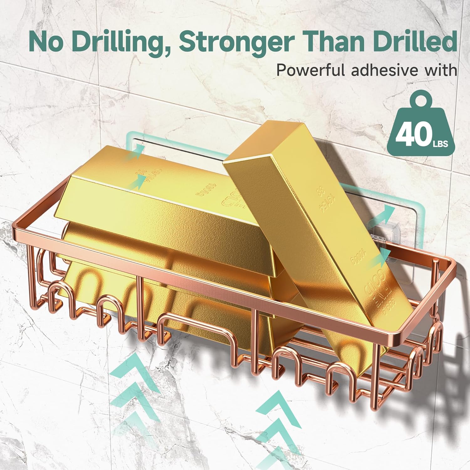 Veken Shower Caddy 6-Pack, No Drilling & Rustproof, Waterproof Adhesive Shelves Rack with Soap Holder, Large Capacity Bathroom Organizers and Storage, Wall-Mounted Kitchen & Home Decor, Rose Gold