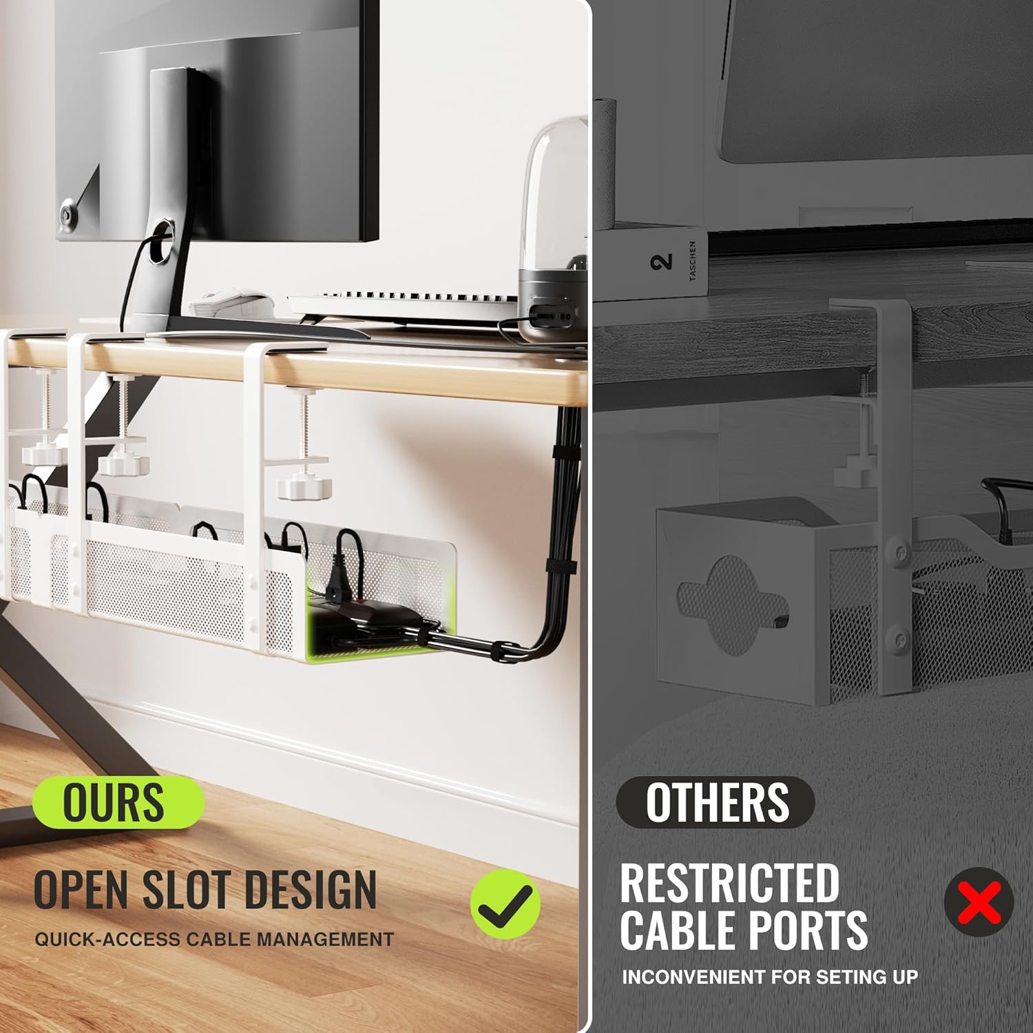 - What You Will Get - Great value under desk cable management kit contains 2 cable trays, 4 cable clips and 6 cable ties. When aligned, the 2 trays create an extra-long 27.6 inch under desk solution. The rust-proof steel construction ensures durability, making it ideal for multiple devices in offices, home studios or gaming setups.