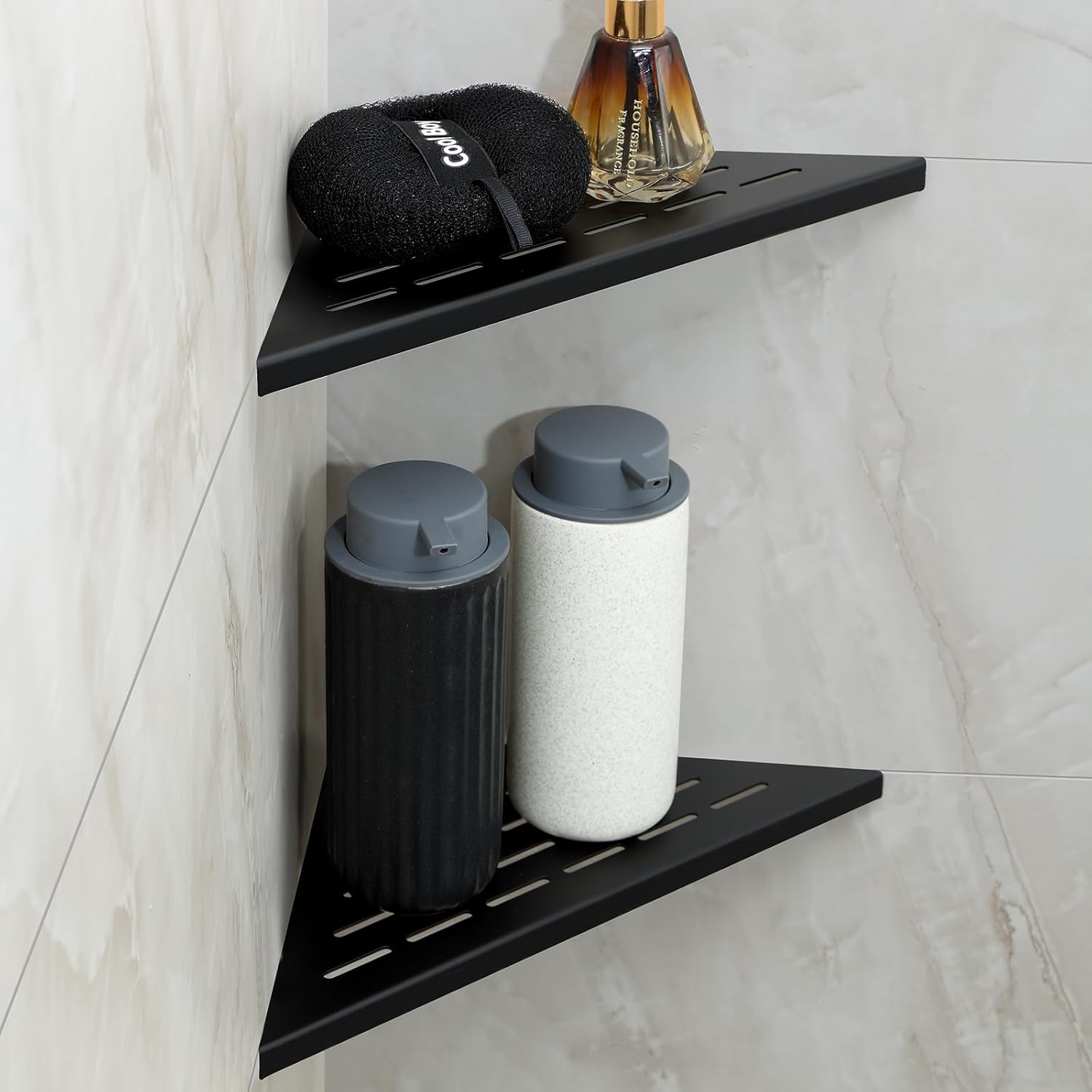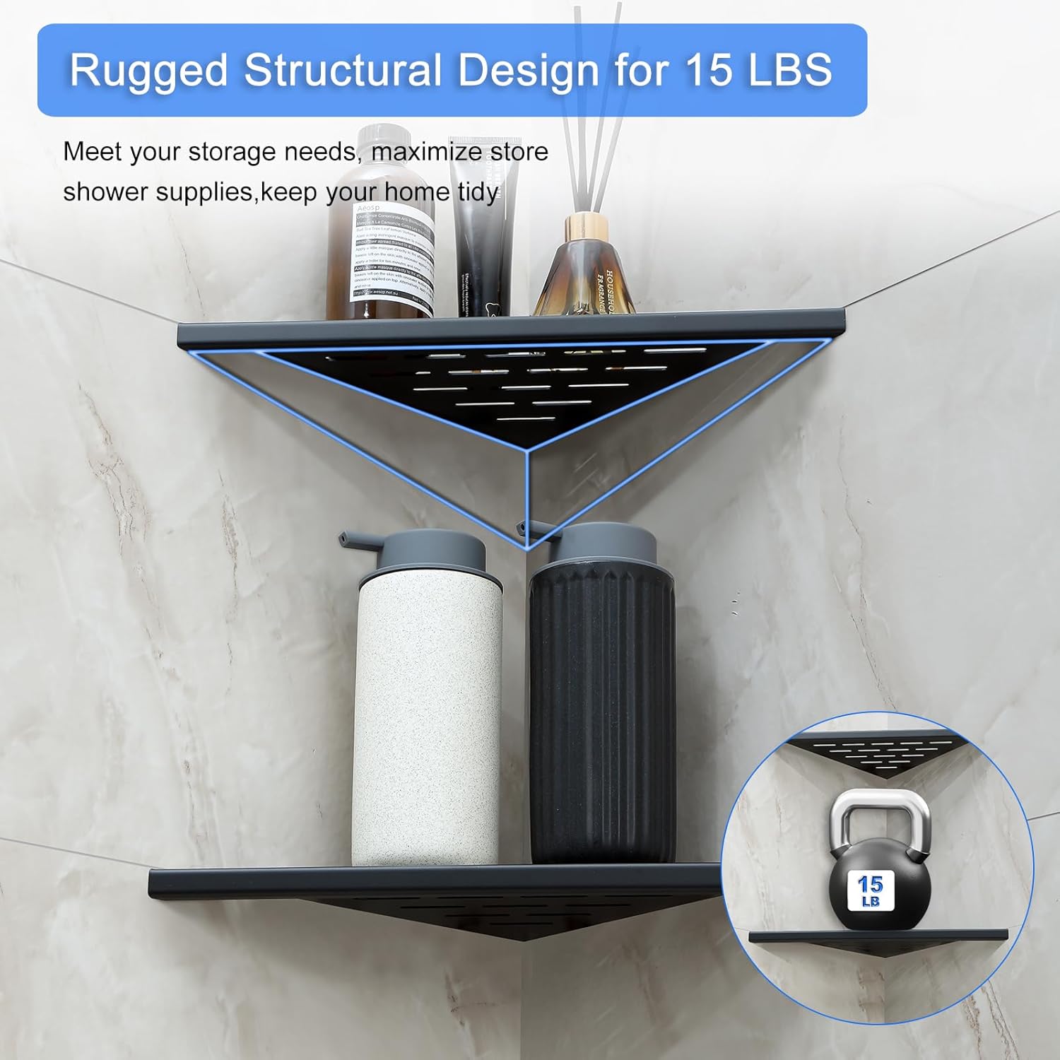 - 【Space-Saving Corner Solution】Fits perfectly in 90° shower corners to maximize unused space. Holds 3-4 full-size bottles while keeping your shower floor clutter-free