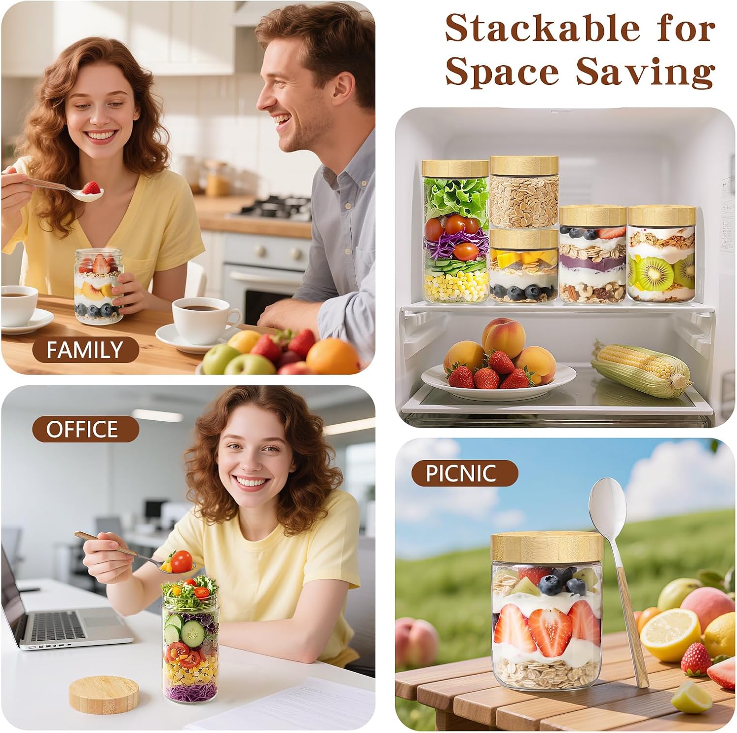 - 【Versatile Meal Prep Jars with Lids】10oz overnight oats containers with lids are perfect for prepping meals like overnight oats jars, yogurt jars, salads jars, chia pudding jars with lids, sauces and blending smoothies, they offer a practical and stylish solution for preserving, storing or displaying your DIY creations, making them an essential item for every home.