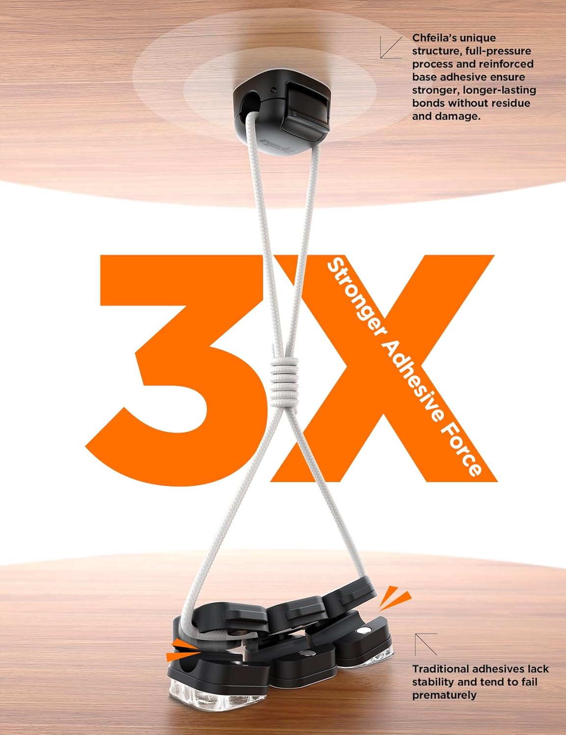 - ✅【Superior Adhesive Strength】Chfeila cable managementstarts with our exclusive adhesive system. Engineered with a unique base and pressure-holding technology, it delivers exceptional, lasting stickiness on diverse smooth surfaces: glass, metal, wood, walls, tile, car dashboards (avoid outdoor use). Removes easily without damage or residue, includes 4 extra pads for replacements. Your reliable cord organizer for desk or cord holder for nightstand. Effortless wire organizers for cords placement.