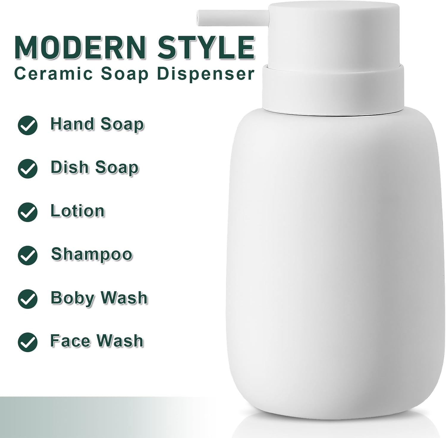 Matte White Soap Dispenser Bathroom,Ceramic Soap Dispenser Lotion Pump Dish Soap Dispenser for Kitchen,16oz Refillable Liquid Hand Wash Dispenser for Bathroom (Rubber Paint)
