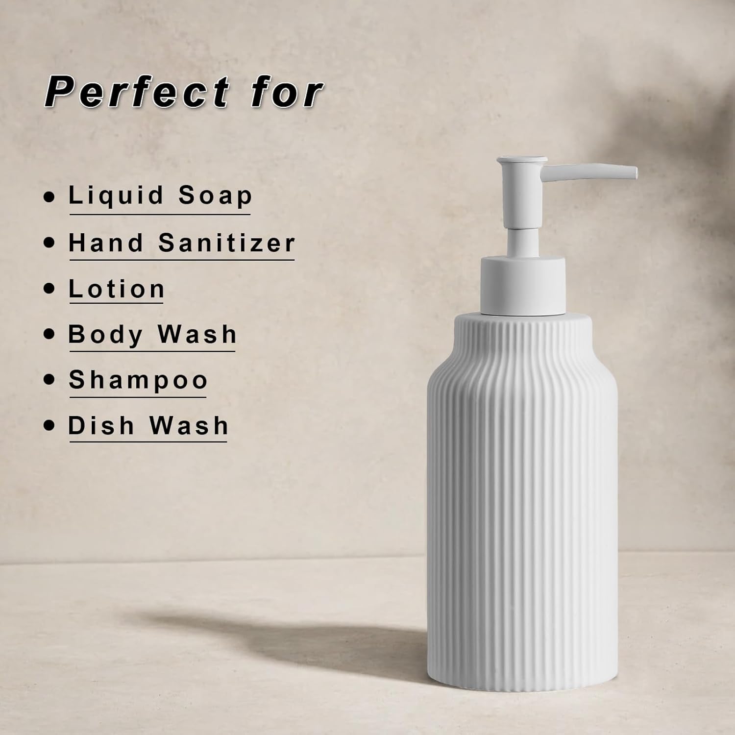 Modern Matte White Soap Dispenser for Bathroom,14oz Ceramic Soft Touch Hand Lotion Dispenser with Pump,Liquid soap Dispenser for Kitchen Rubber Paint (White)