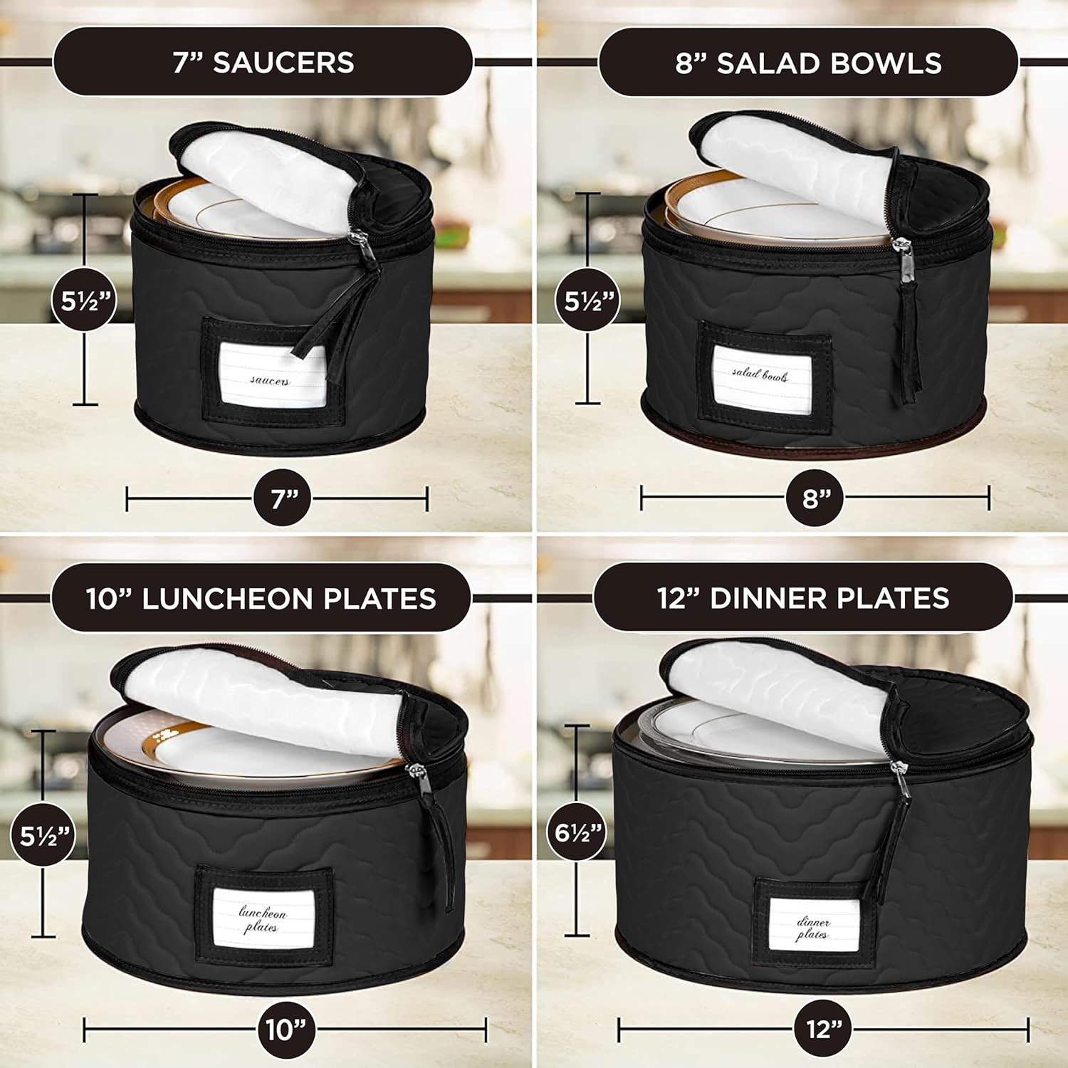 China Storage Containers 5-Piece Set Moving Boxes for Dinnerware, Glasses, Plates, Mugs and Saucers Sturdy Quilted Microfiber Dish Organizer with Dividers for Seasonal Storage - Holds Set of 12, Black
