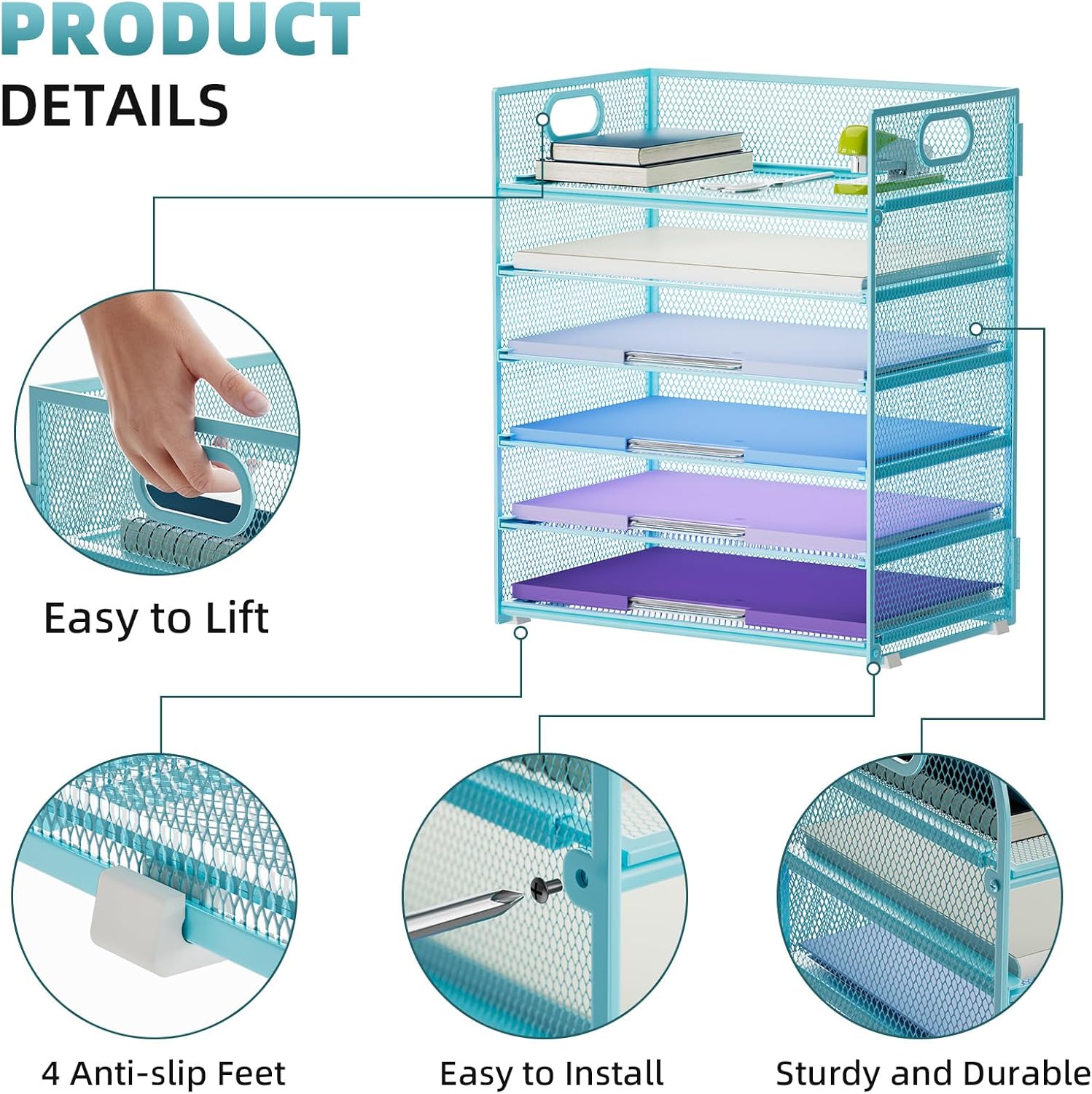 Marbrasse 2 Pack Desk Organizer with Handle, 6 Tier Paper Letter Tray, Mesh Desk File Organizer for Office, School and Home - Blue