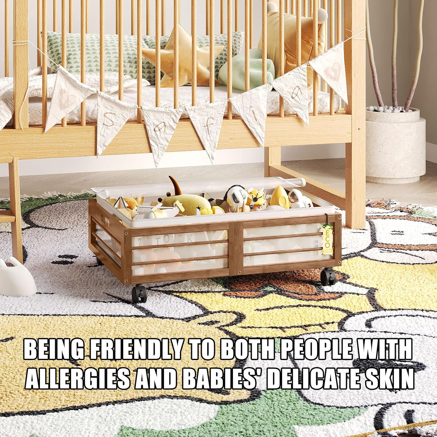 - ๐ฆ๐๐๐ฟ๐ฑ๐ ๐ฎ๐ป๐ฑ ๐๐๐ฟ๐ฎ๐ฏ๐น๐ฒ ๐๐ผ๐ป๐๐๐ฟ๐๐ฐ๐๐ถ๐ผ๐ป: Our under bed drawers on wheels is crafted from 100% Real bamboo, ensuring long-lasting quality and a stylish, natural aesthetic that complements any bedroom decor. Equipped with 4 rotating wheels, each capable of bearing up to 127 pounds.