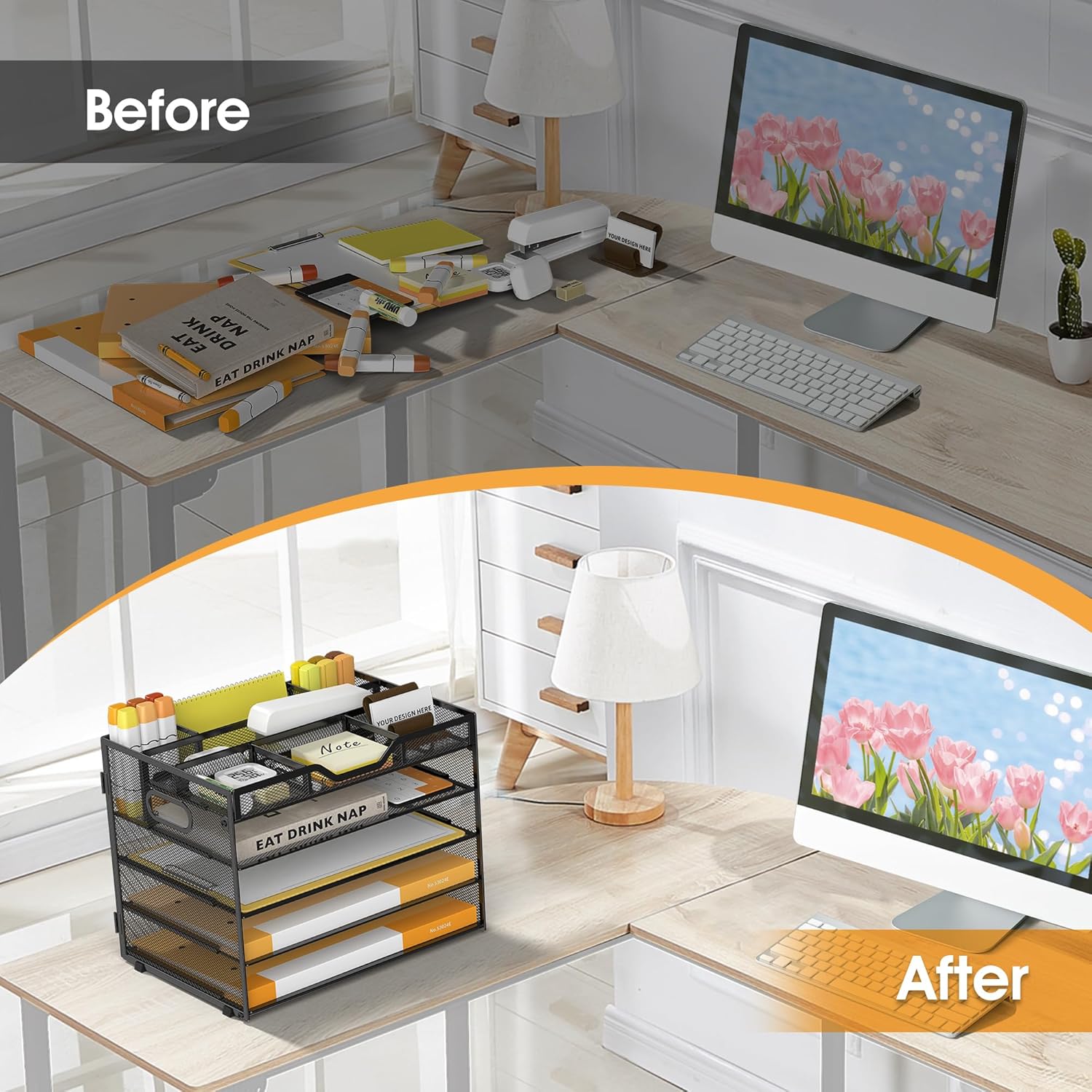 - Quality Materials and Superb Craftsmanship-Featuring a lightweight and durable metal mesh construction with a sturdy frame and powder-coated finish that ensures the desktop file manager won't bend or break when holding large quantities of paper, files and books, the file manager has a smooth finish that complements the office's work decor