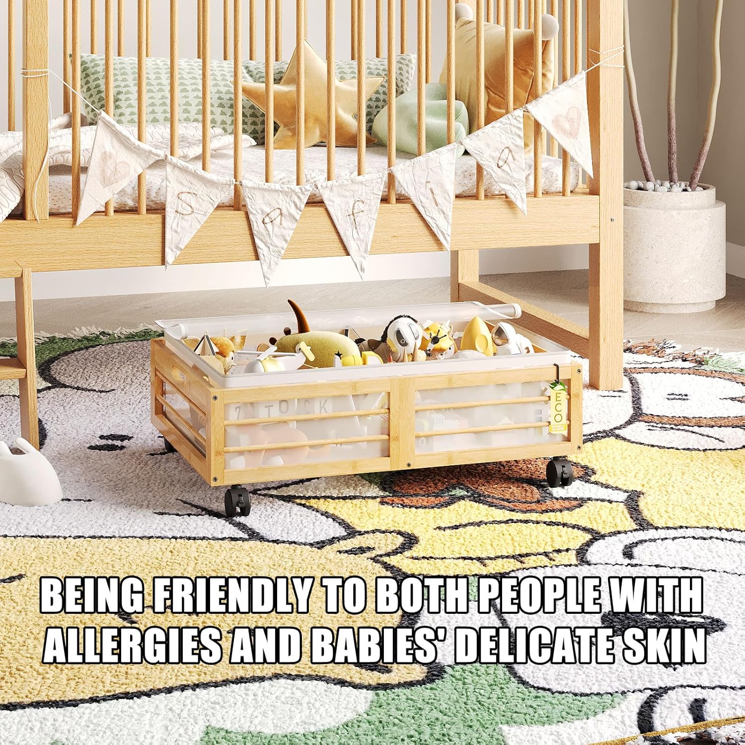Under Bed Storage Containers with Wheels, Larger Bamboo Wood Under Furniture Storage Containers with Dust Bags๏ผRolling for Shoes Clothes