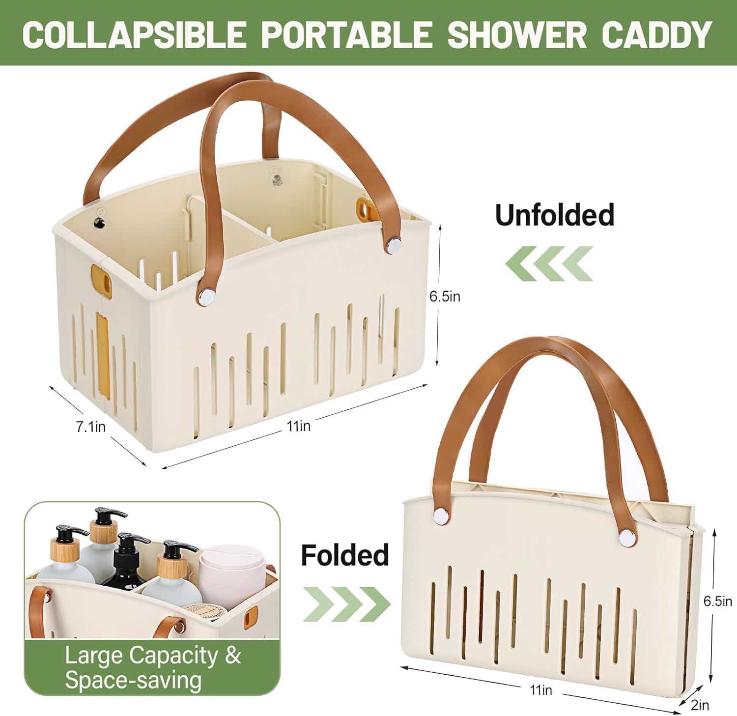 - Perfect Size & Removable Divider: Portable shower basket is 11*7.1*6.5 inches when unfolded, roomy capacity with detachable divider, easy to store your various bathroom essentials such as shampoo, lotion, conditioner, shaving cream, facial cleanser and so on