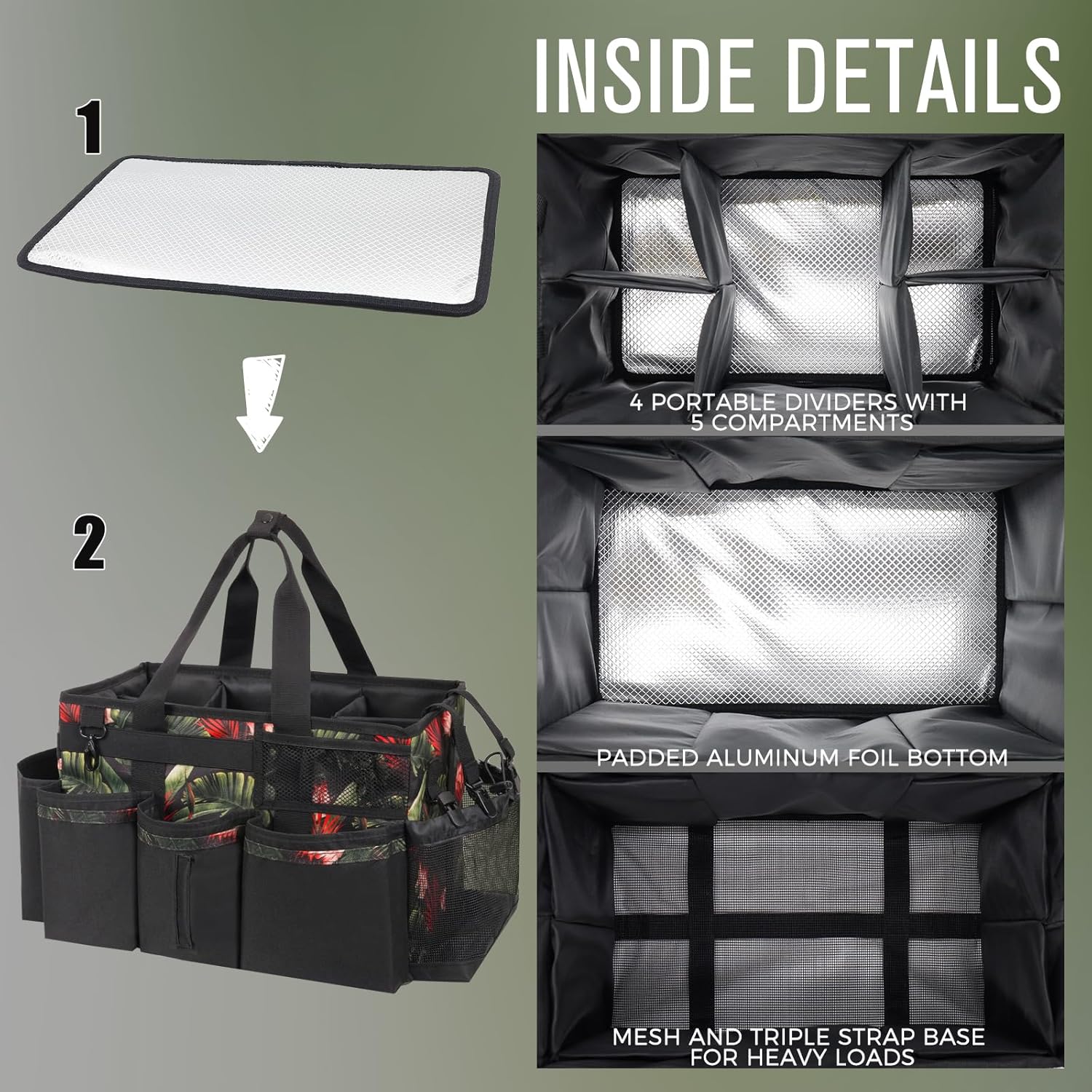 Wearable Cleaning Caddy, Cleaning Caddy Supplies Organizer with Handle & Shoulder Straps for Housekeepers, Under Sink & Car Cleaning Tool Organizers Bag with 4 Foldable Divider (GreenBush)