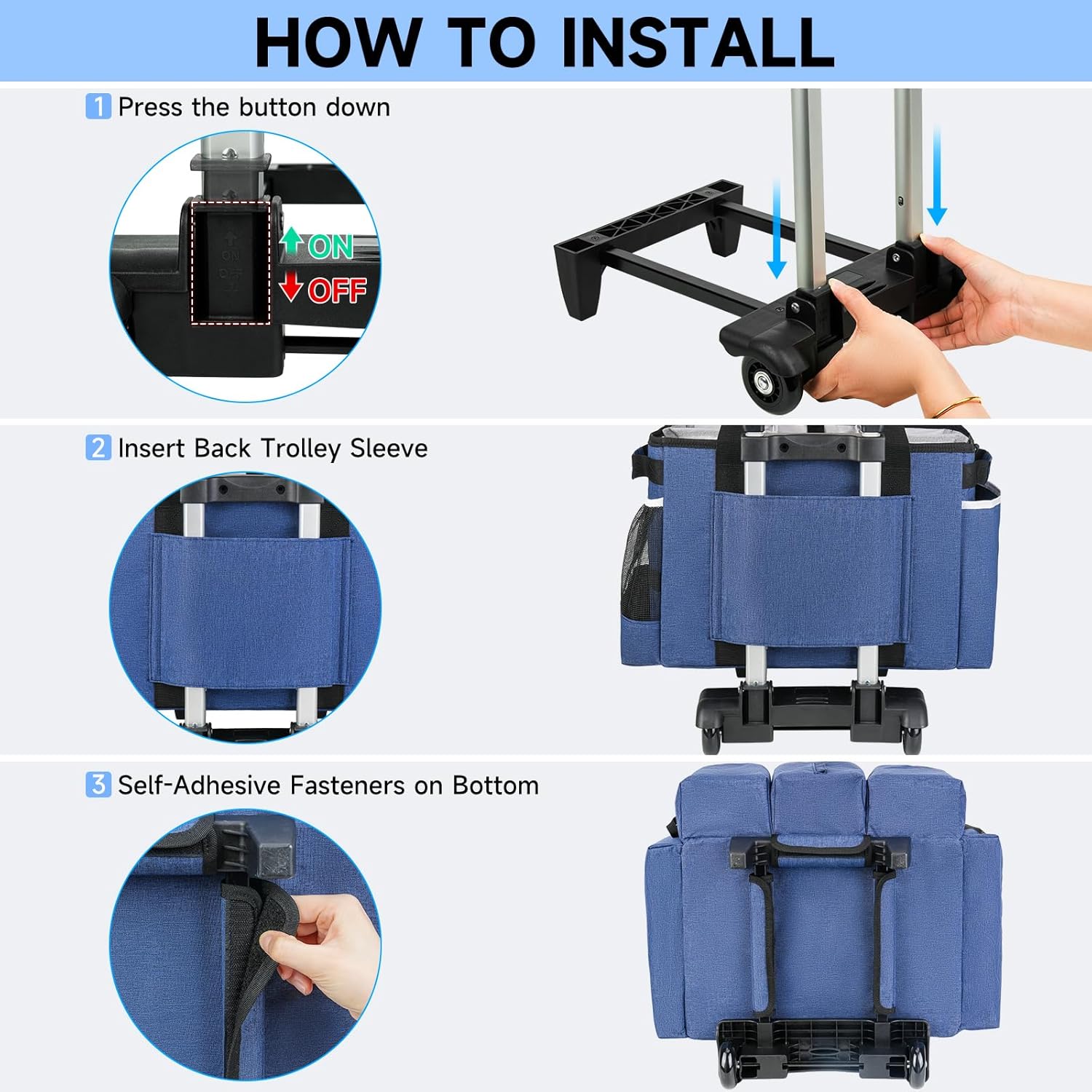 Large Rolling Cleaning Caddy Bag with Detachable Trolley,Cleaning Cart on Wheels with Shoulder Strap,Cleaning Supplies Organizer for Housekeepers,Blue